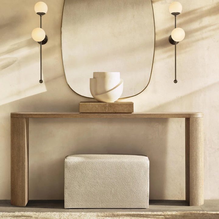 The Anzio console embodies effortless sophistication with its sleek, rounded corners and minimalist structure. Its smooth top and sturdy legs offer a versatile surface that fits seamlessly in a hallway, living room, or behind a sofa. The clean lines and understated design allow the piece to complement any modern interior, bringing a sense of calm and refinement to your home.