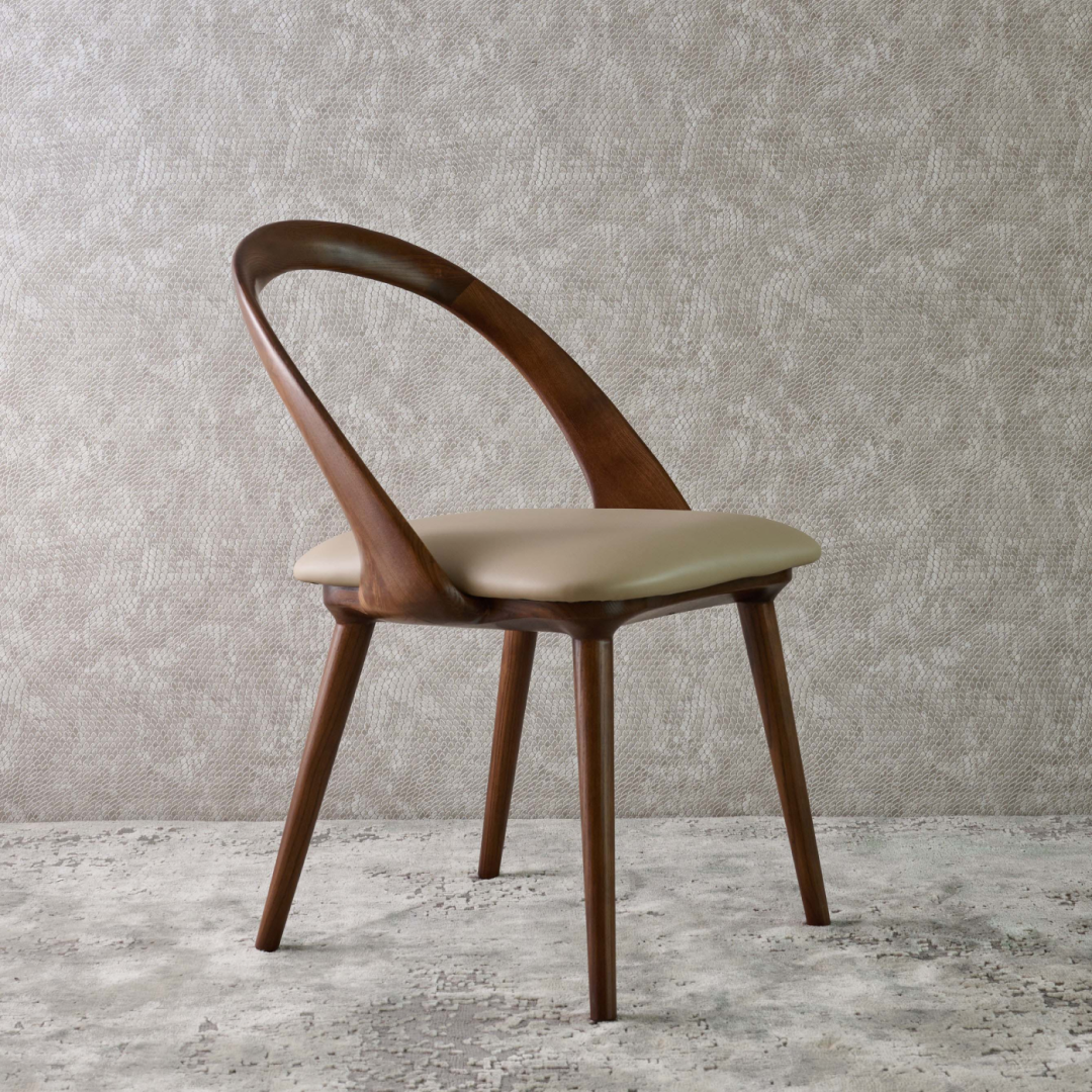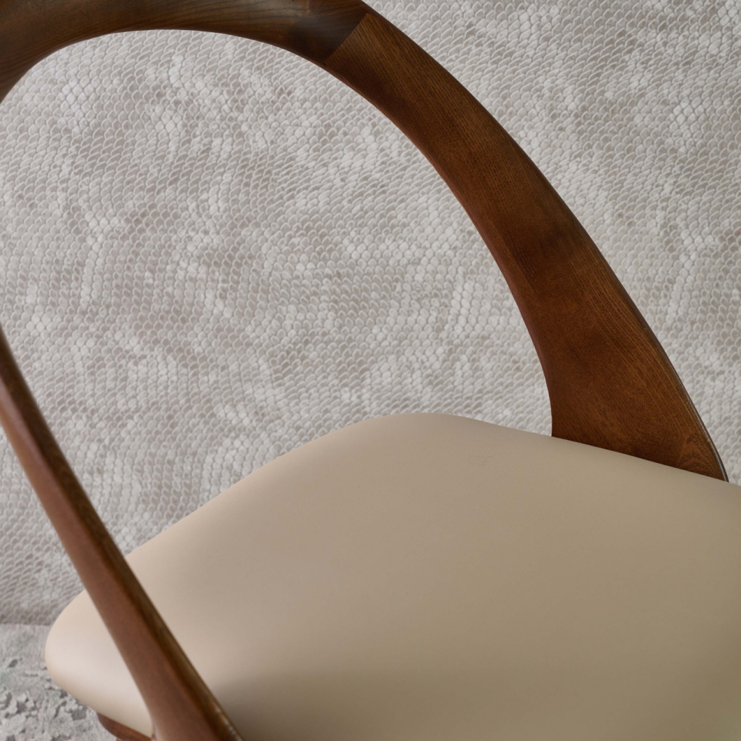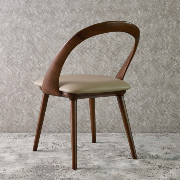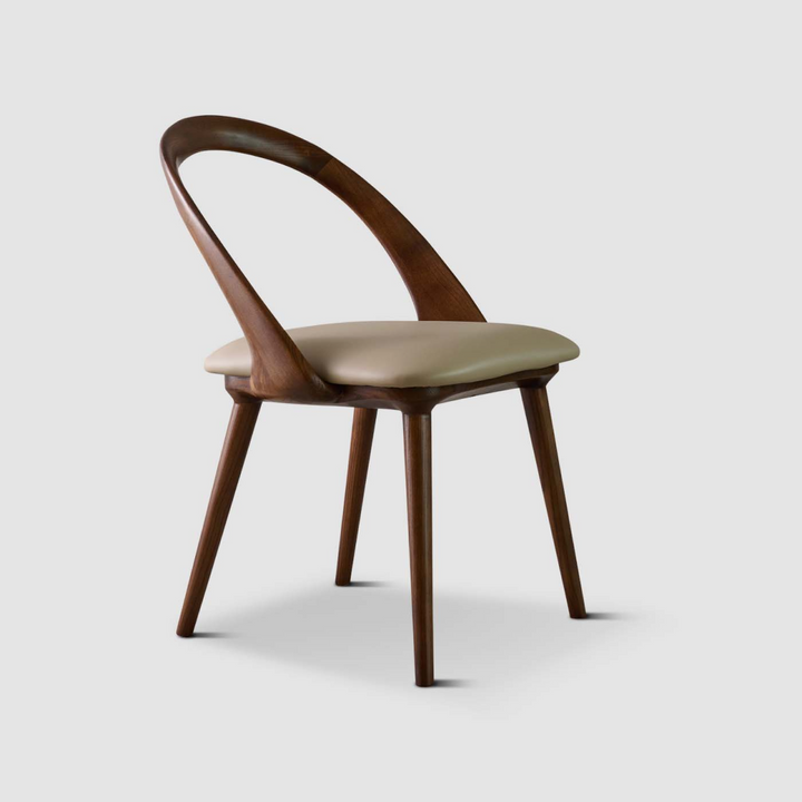 The Arco Dining Chair showcases a graceful blend of form and function with its elegant arched backrest. Crafted from solid wood and upholstered in smooth PU leather, the chair is both comfortable and stylish. High-density foam cushioning adds comfort, while the open-back design brings a light, modern touch to dining areas.
