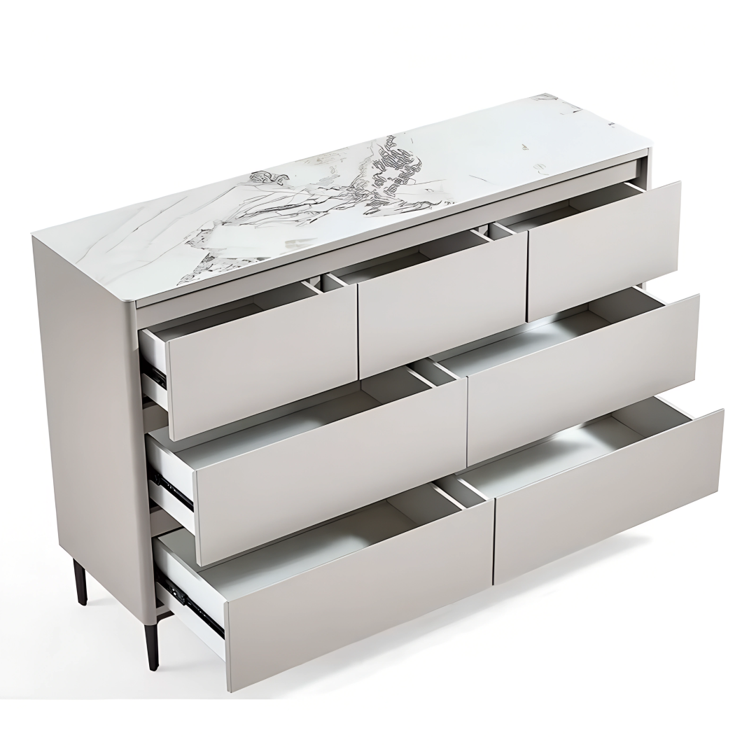 The Argento Dresser, with its sleek lines and modern design, offers a minimalist yet impactful addition to any room. Constructed from high-quality plywood and supported by stainless steel legs, it provides a stylish storage solution with a subtle metallic touch.