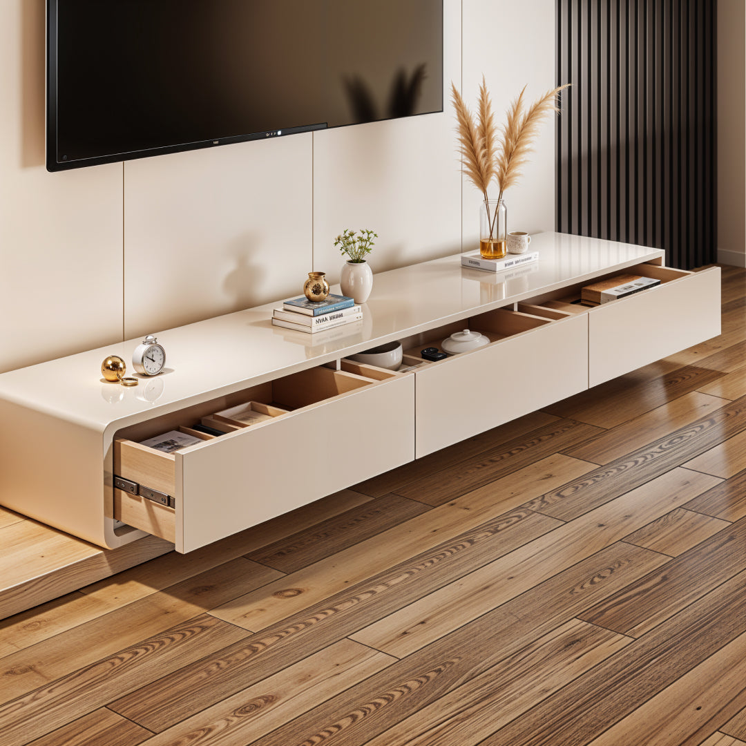 The Armonia Media TV-cabinet is designed to evoke a sense of balance and harmony in your living space. Its sleek, minimalistic form sits on a solid wood base, accentuating both functionality and aesthetics. The solid wood drawer design offers a smooth, quiet glide for everyday use, while the plywood body keeps the look light and contemporary.