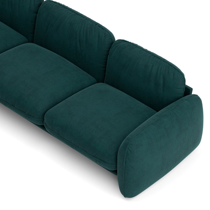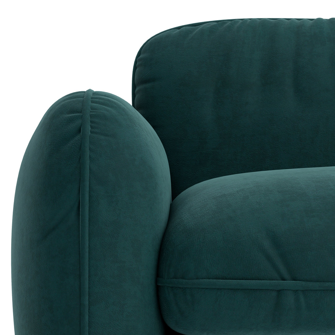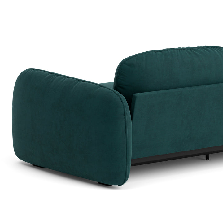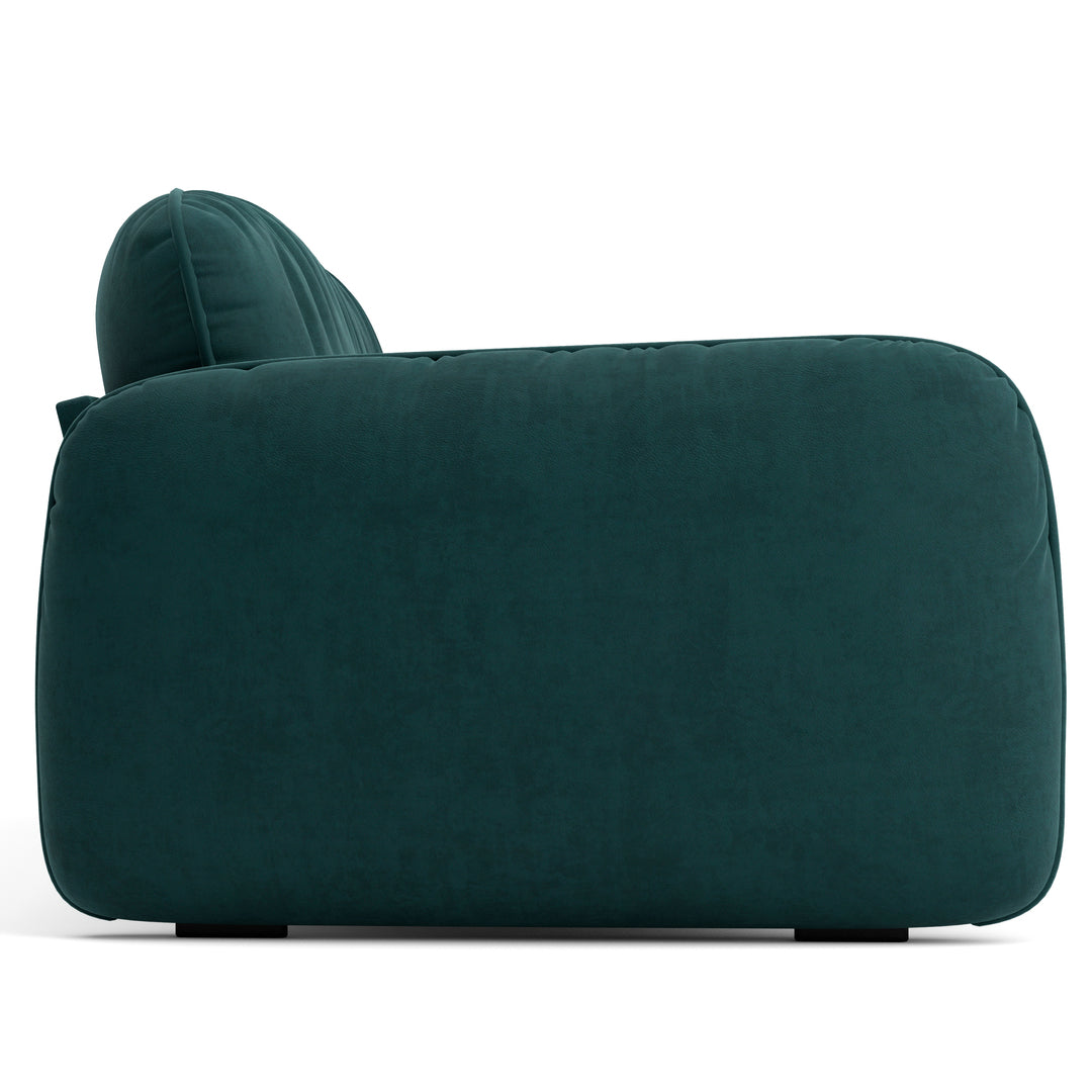 The pine wood inner frame and high-density foam ensure lasting durability and comfort. Upholstered in rich fabric/PU, this sofa provides a luxurious seating experience while maintaining a modern and playful aesthetic. Its rounded edges and soft design make it a perfect choice for contemporary living rooms looking for a bold yet calming accen