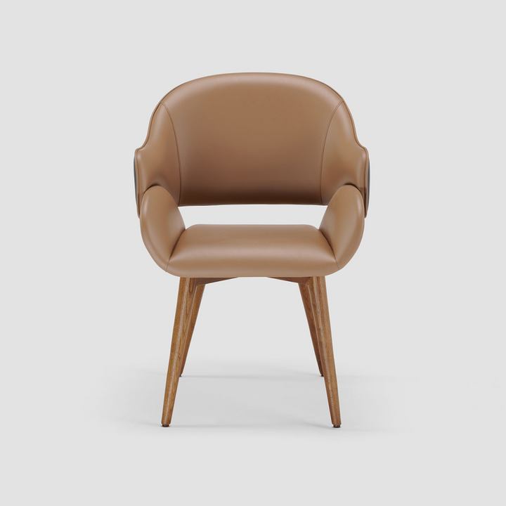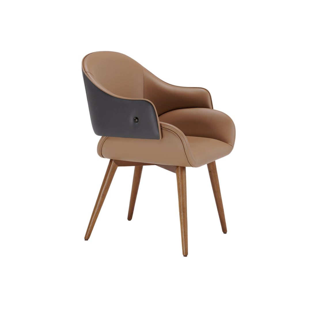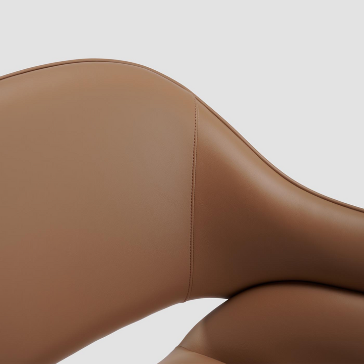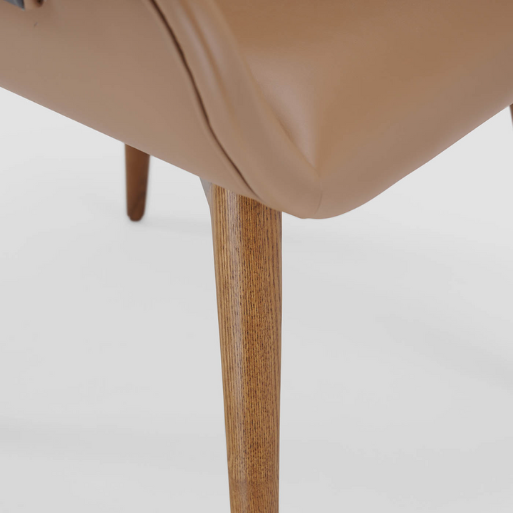 The Bellina Dining Chair exudes refined elegance and modern comfort. Upholstered in smooth PU leather with high-density foam cushioning, this chair offers a plush seating experience. The solid wood legs add warmth and stability, while the curved backrest and armrests provide a sense of coziness and support. Ideal for both dining spaces and accent seating