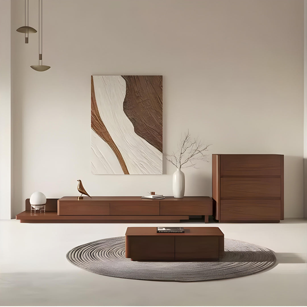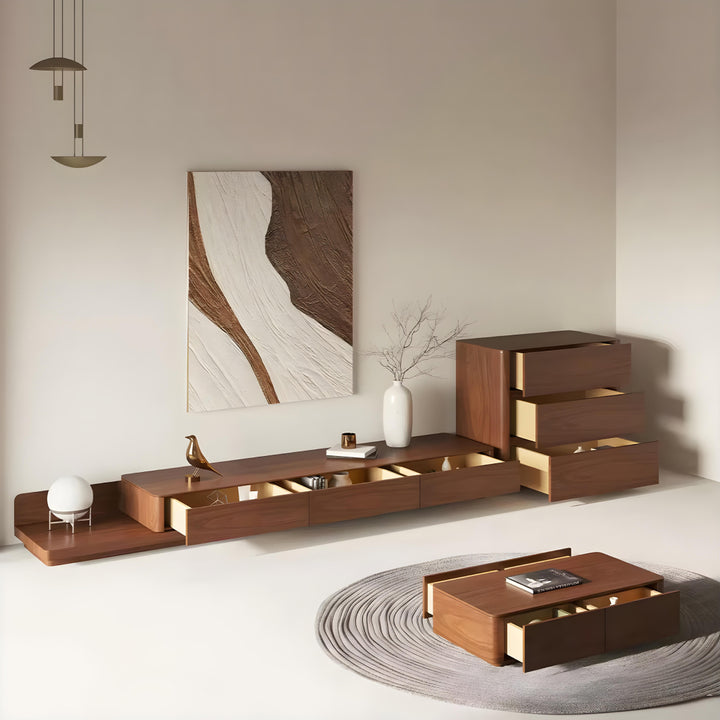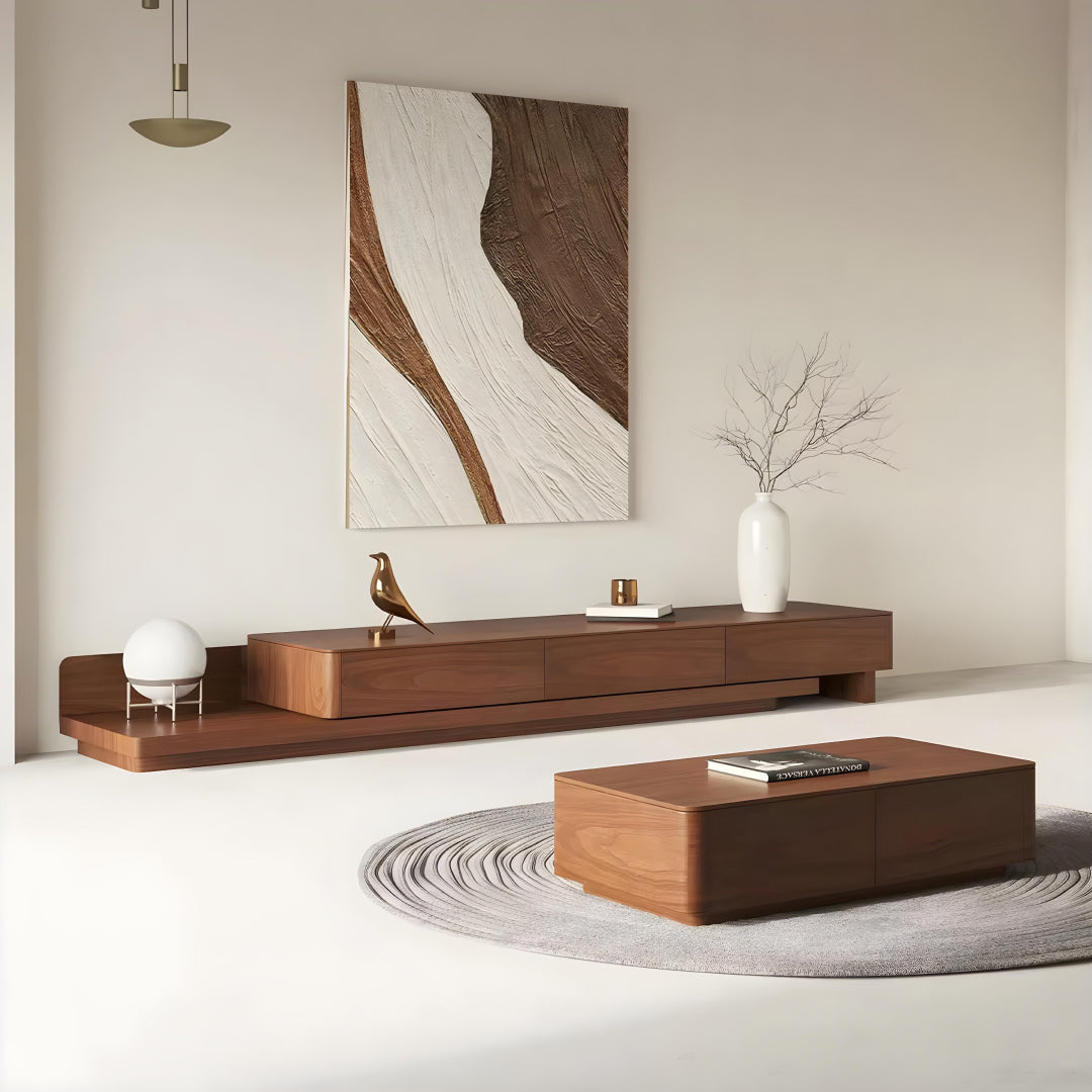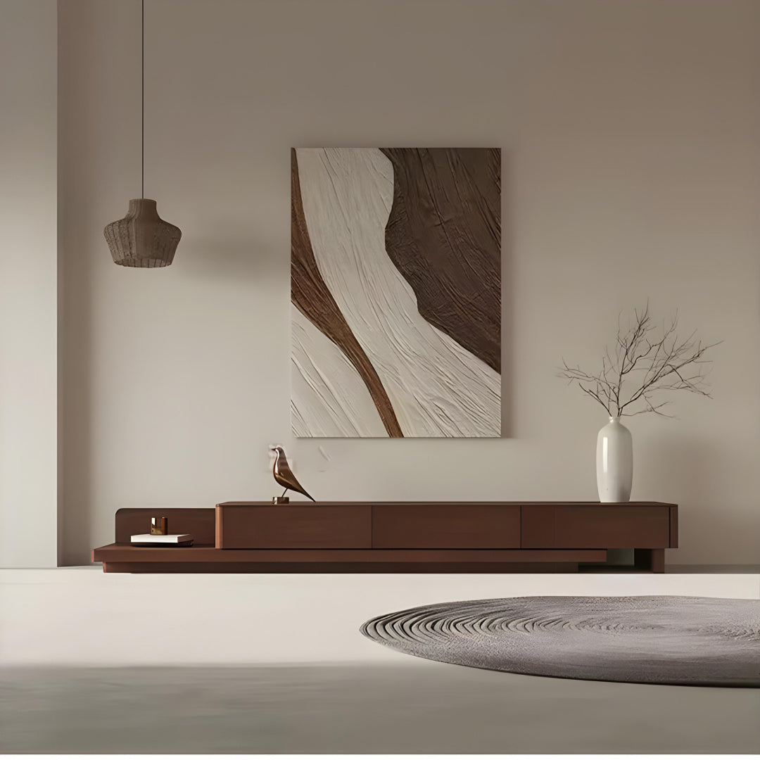The Bosco Media Console is a perfect mix of warmth and modernism. Crafted from MDF with solid wood drawers, it provides excellent storage while adding a sophisticated natural vibe to your living space