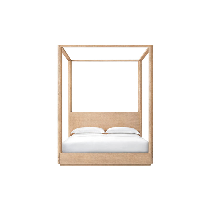 With its imposing four-poster design, this bed serves as a statement piece that anchors your space. Expertly handcrafted from kiln-dried wood and oak veneers, it offers both sophistication and durability. The solid wood legs provide a sturdy foundation, while the intricate detailing adds a classic yet timeless appeal to your interior