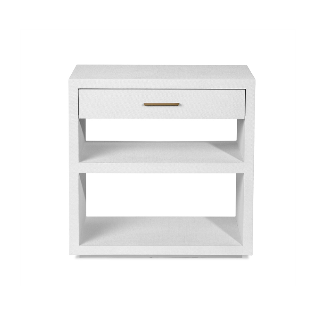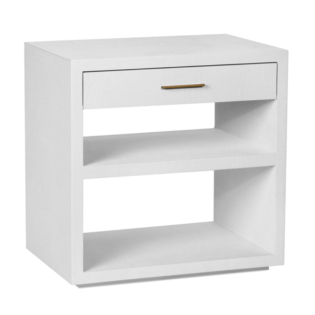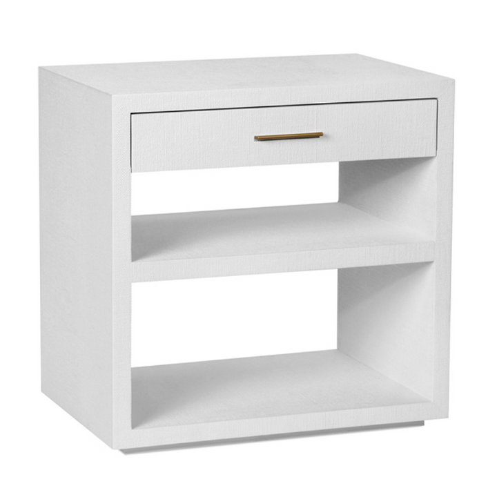 The Chiaro Nightstand offers a sleek and modern look, featuring a single drawer and two open shelves for practical storage. Its streamlined design and light finish make it a versatile piece that fits effortlessly into contemporary bedrooms, adding both function and elegance to your space.