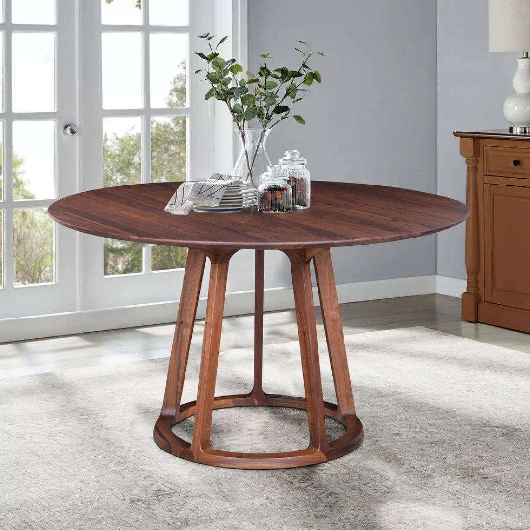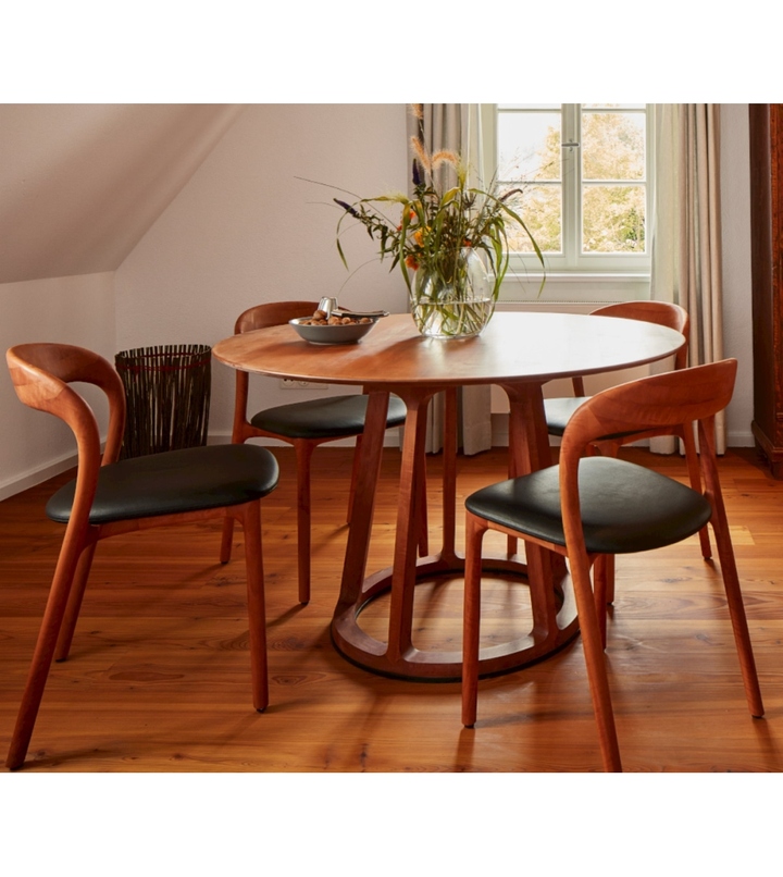 The Circolo Table offers a harmonious blend of simplicity and elegance with its round MDF veneer frame and robust ash wood legs. Its circular shape creates a warm, welcoming atmosphere, while the open, airy base adds a lightness to the design. Perfect for smaller dining areas or cozy gatherings, this table invites connection and conversation, bringing a timeless appeal to any space.
