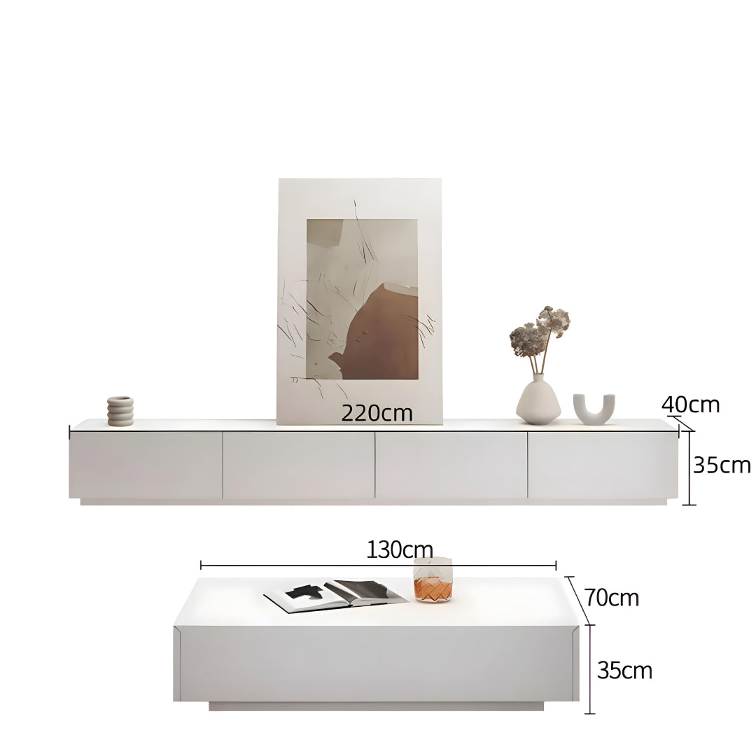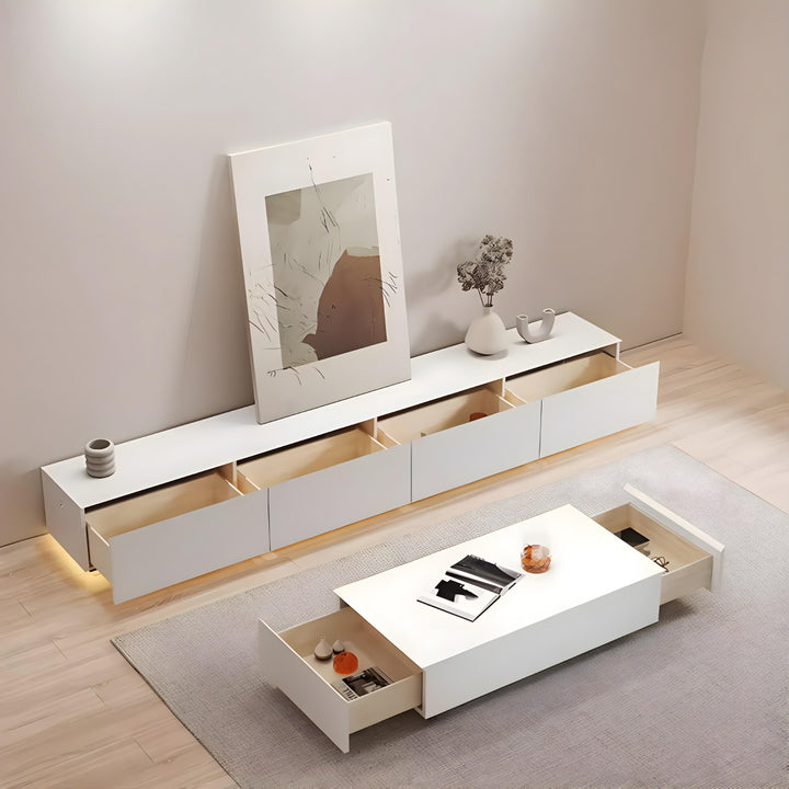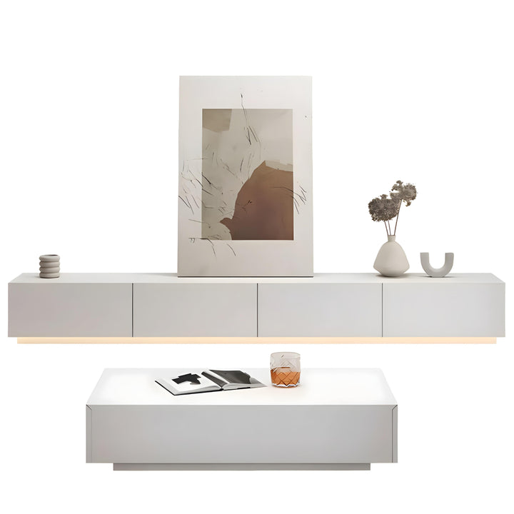 The Brillare Sideboard exudes a clean, minimalist aesthetic with its expansive plywood construction and elegantly integrated solid wood drawers. The seamless design ensures a refined look, while the subtle LED lighting along the base adds a soft, ambient glow, creating a sophisticated atmosphere. Ideal for modern interiors, this piece serves as both a functional storage solution and an artistic addition to your living space.