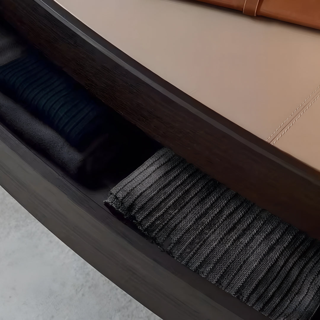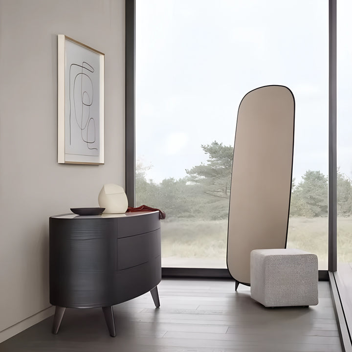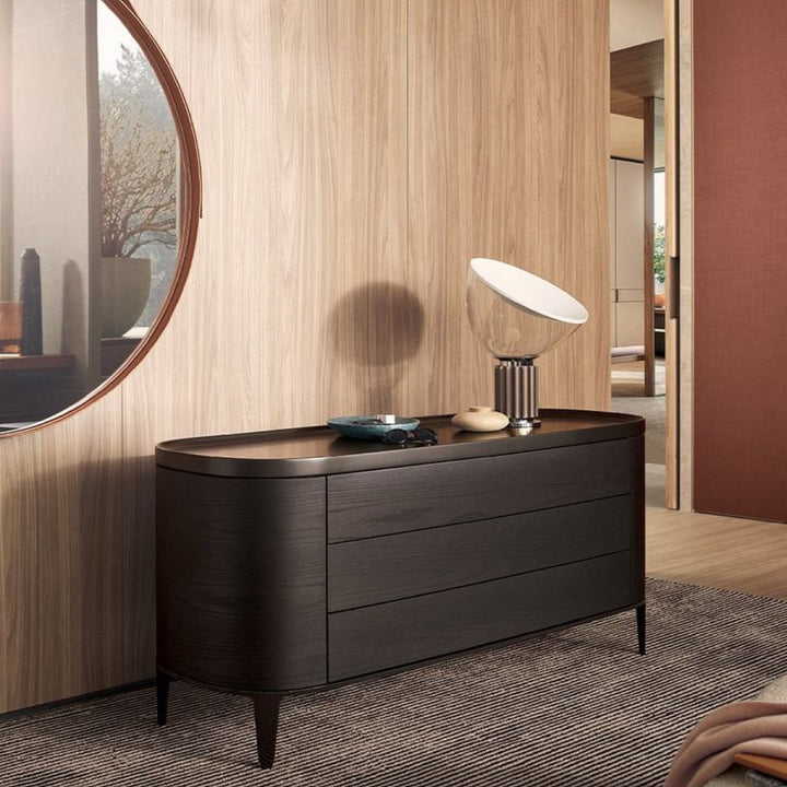 The Fosco Chest boasts a modern aesthetic with its curved profile and rich, dark wood veneer. This elegant piece offers two spacious drawers that glide open effortlessly, combining both beauty and practicality. Raised on slim, minimalist legs, it adds a subtle sense of elevation and sophistication to any room. The Fosco Chest is ideal for those seeking contemporary storage solutions that also serve as standout design elements in their space.