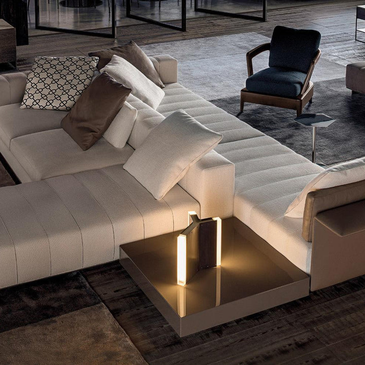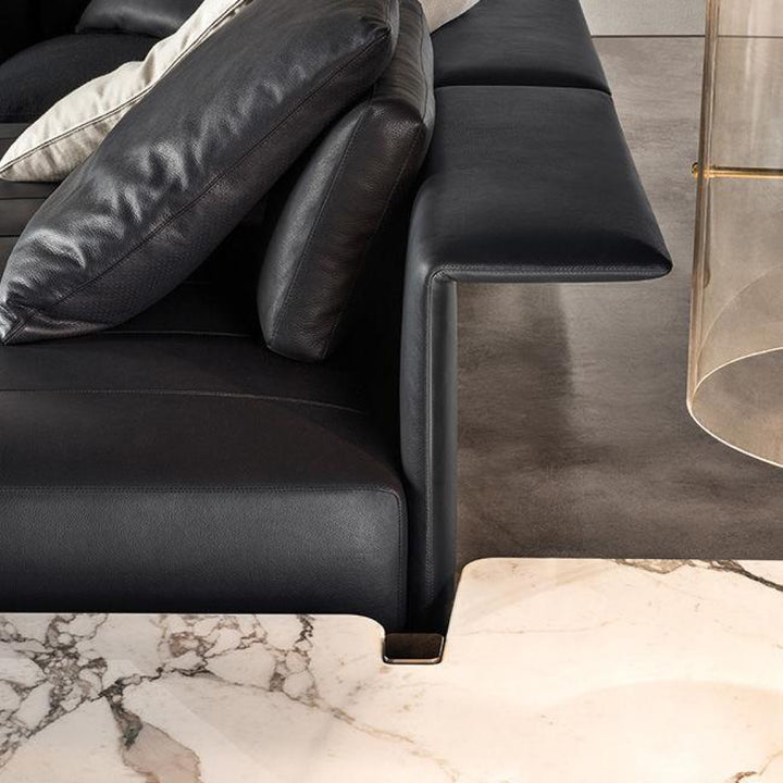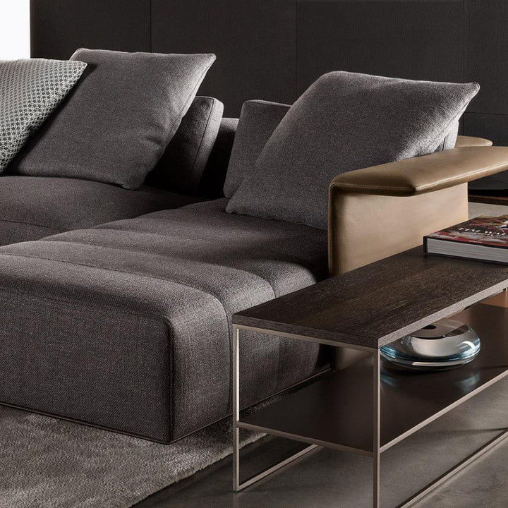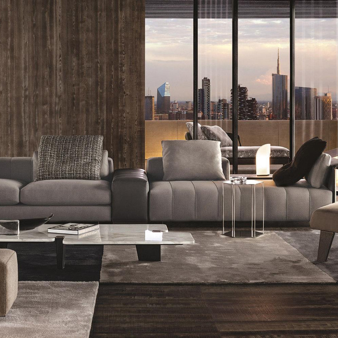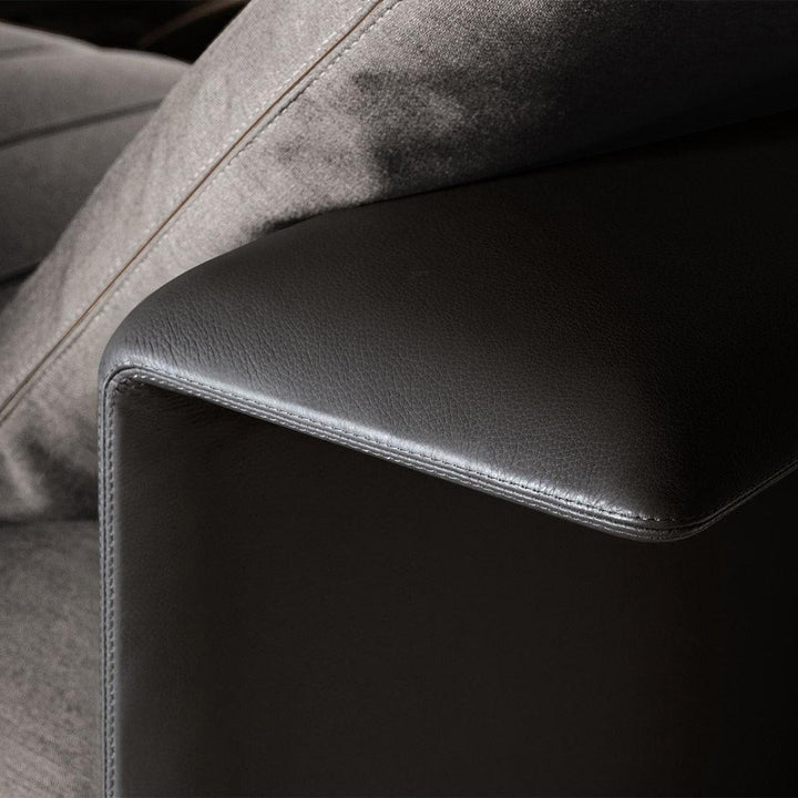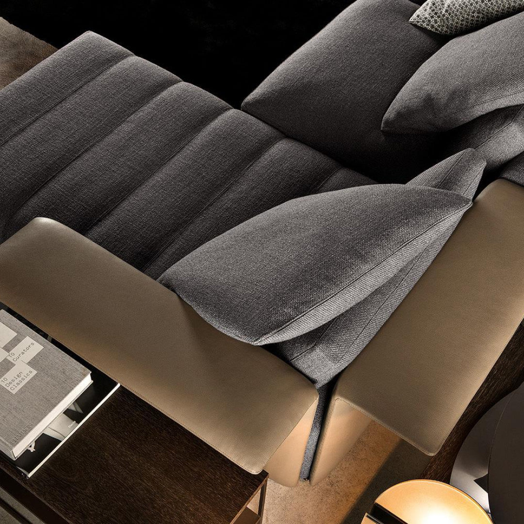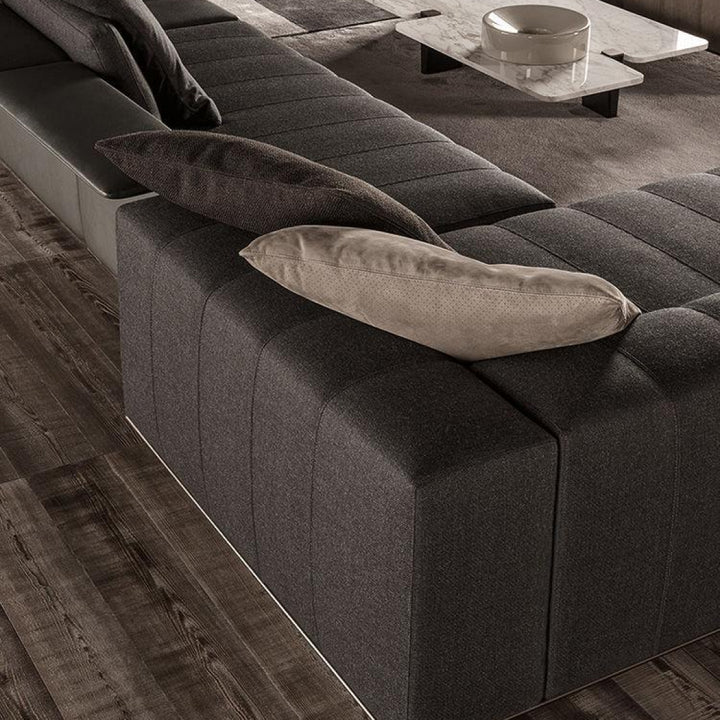 The deep grey upholstery, combined with a pine wood inner frame and high-density foam, provides both style and comfort. Whether for lounging or entertaining, Fumo is a versatile addition to any contemporary living space. Its clean lines and rich textures make it a centerpiece that will elevate the ambiance of any room.