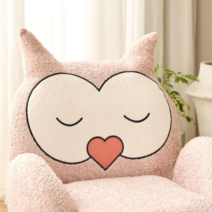 The chair’s soft, cushioned form provides a perfect seating spot for reading, relaxing, or quiet moments. Its sweet owl face, with closed eyes and a heart-shaped beak, adds a touch of gentle playfulness, while the sturdy wooden legs ensure stability. The Gufo Coccolo is more than just a chair—it’s a snug retreat that brings warmth and imagination to any child's room