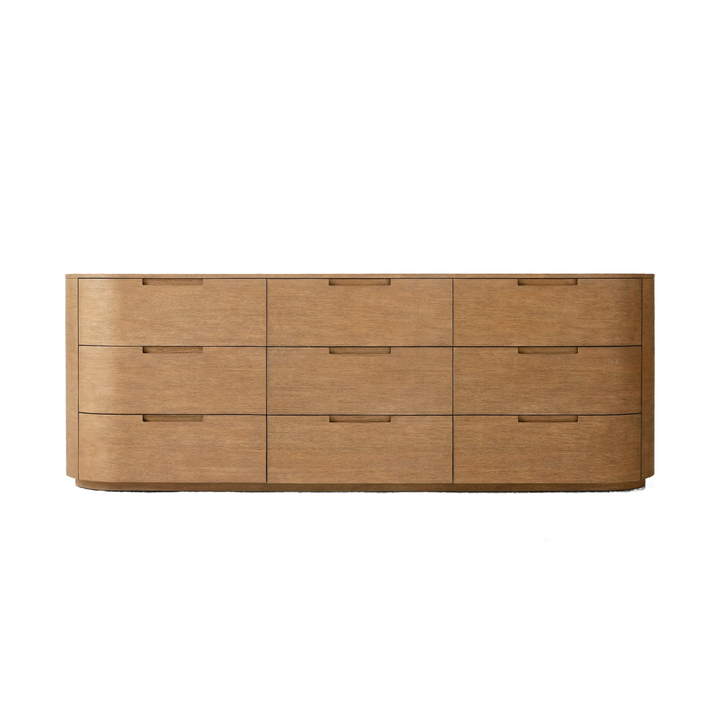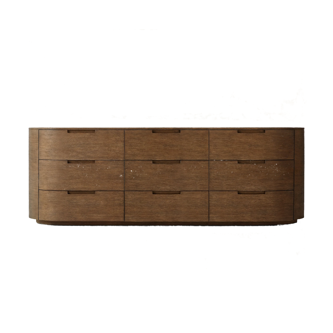 The Livorno dresser presents a striking balance of modern form and effortless function. Its smooth, rounded edges evoke a sense of fluidity, offering a minimalist silhouette that fits seamlessly into both contemporary and traditional interiors. Featuring spacious soft-close drawers, it combines ample storage with a graceful aesthetic, bringing understated refinement to your bedroom or living space.