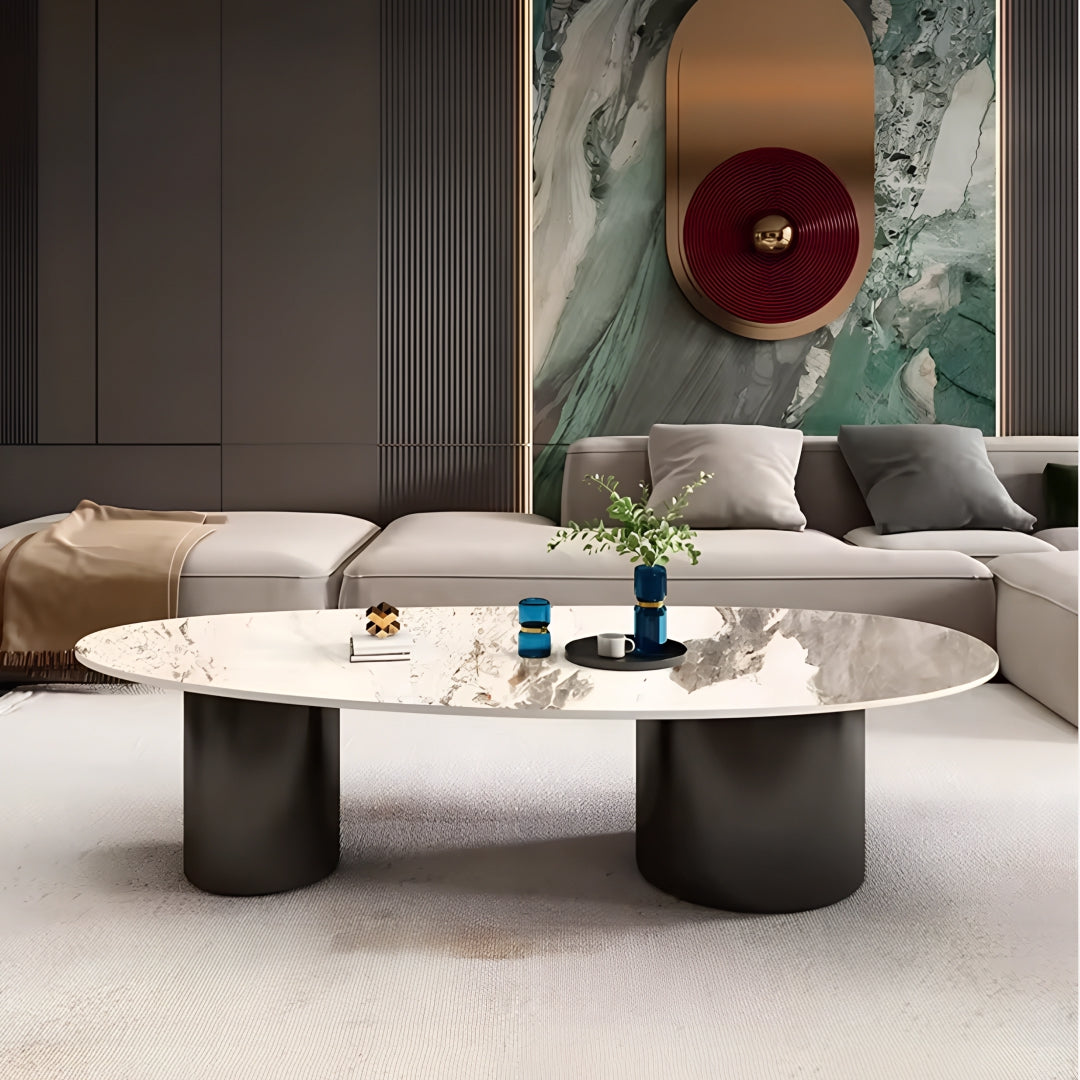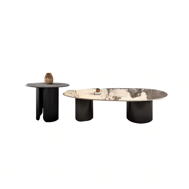 The Luce Marble Coffee Table Set adds sophisticated luxury to any living environment. Each table is a standout piece in its own right, with sleek marble tops and unique vein patterns. The robust stainless steel bases offer a modern industrial feel, perfectly blending elegance and durability. This set is ideal for creating a classy center point and looks well in both minimalist and luxurious settings, combining classic charm and modern functionality in a single attractive design.