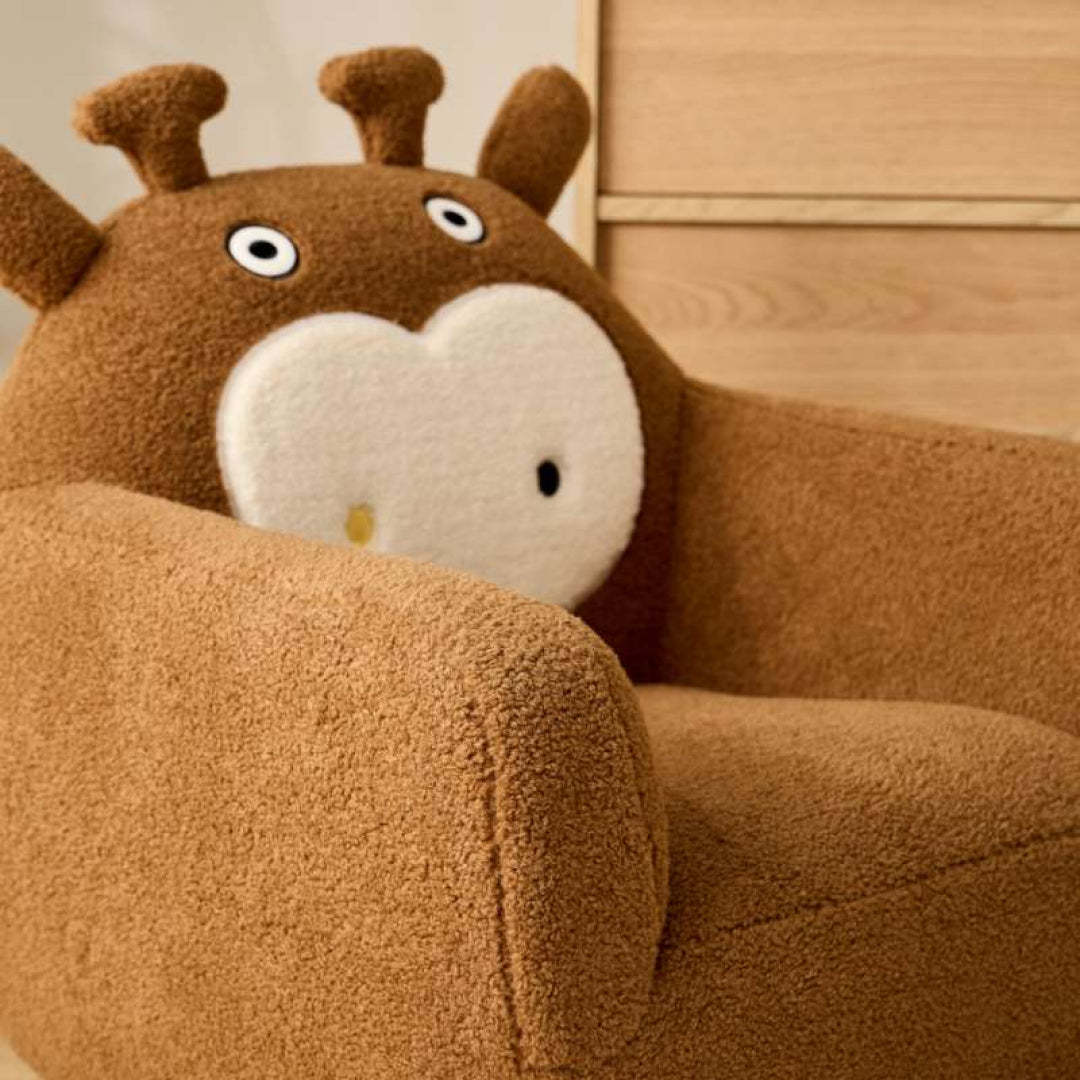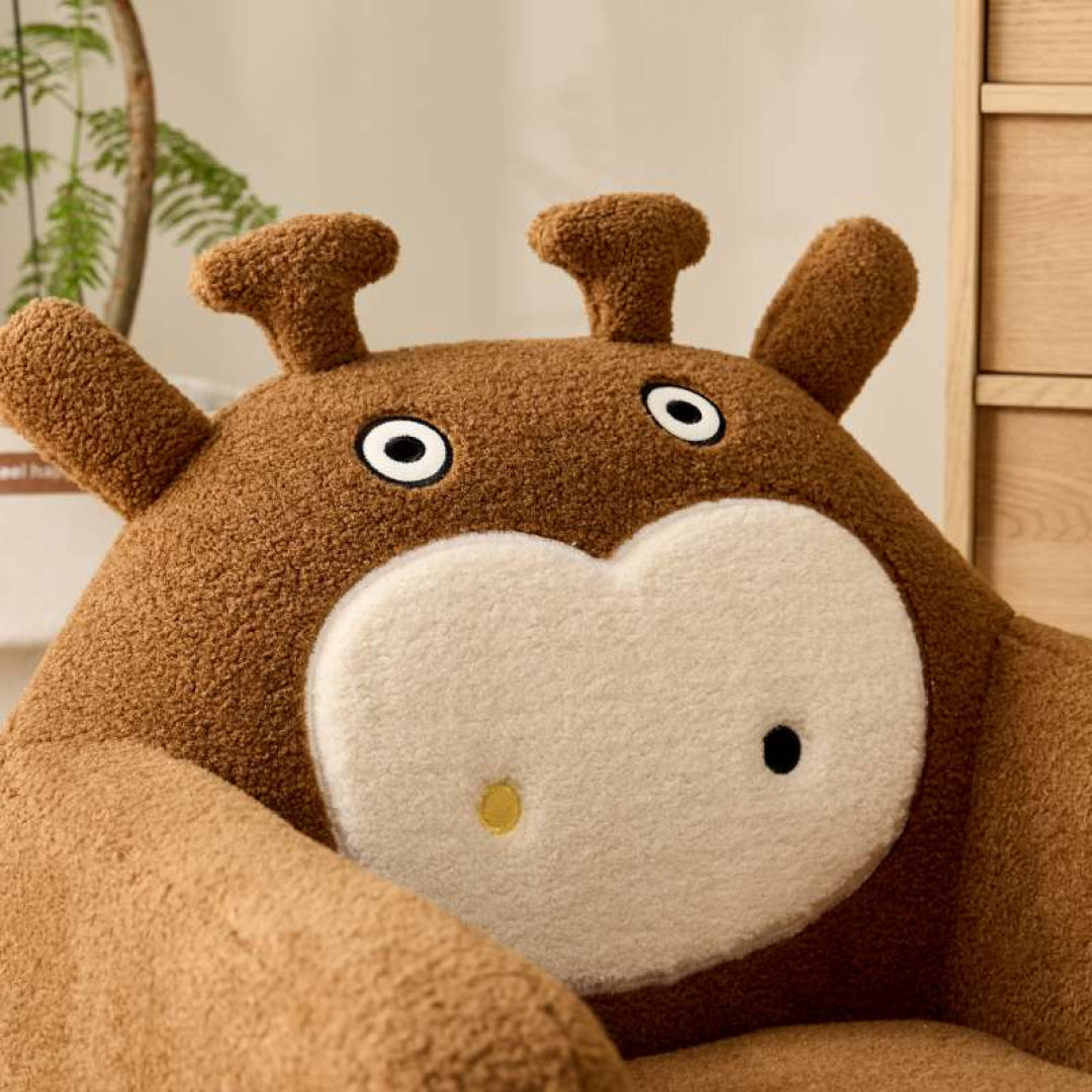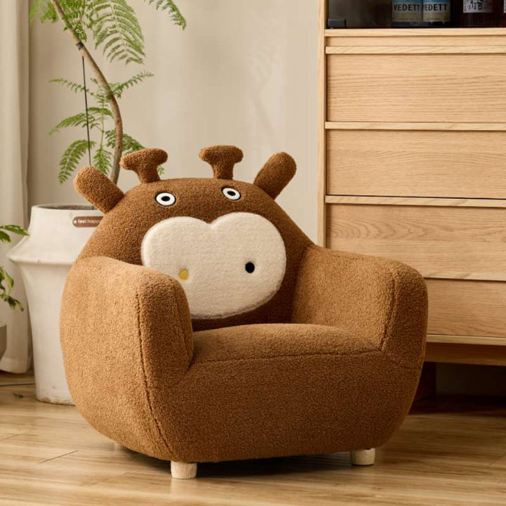 Designed to resemble a sweet and playful cow, this chair adds a touch of farmyard fun to any child’s room. With soft, plush fabric and a gentle heart-shaped face, Muccino is perfect for cozy moments of reading, relaxing, or playtime. The charming little horns and whimsical design make it an instant favorite for little animal lovers. Its sturdy wooden legs provide support while ensuring comfort for your little ones. Muccino is sure to bring smiles and warmth to any space!