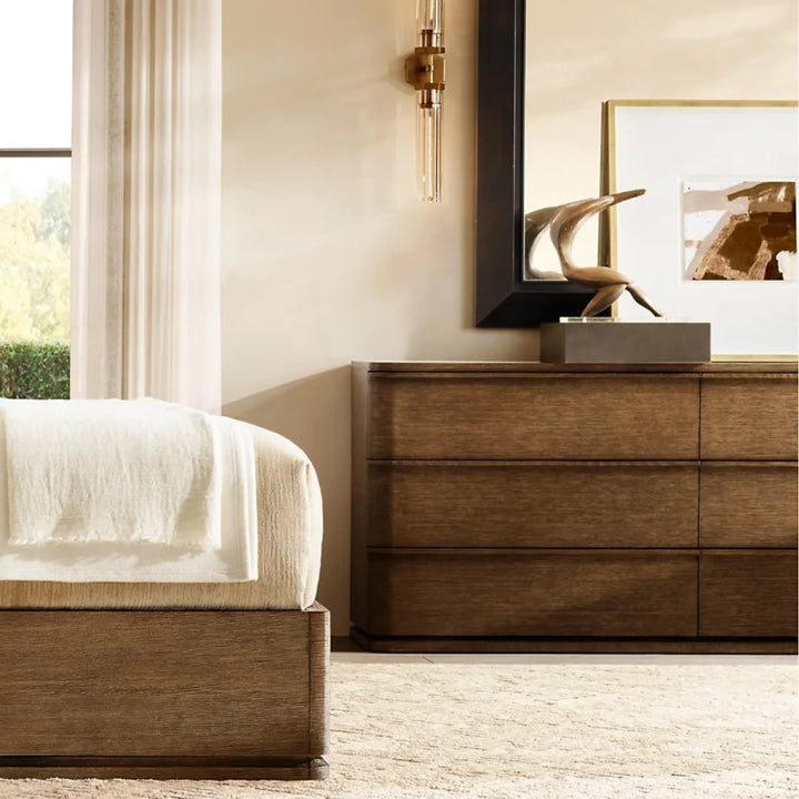 The Nerezza Dresser brings a sleek, sophisticated edge to bedroom spaces. With its six spacious drawers offering ample storage, it combines elegance with practicality, featuring smooth lines that exude refined craftsmanship.
