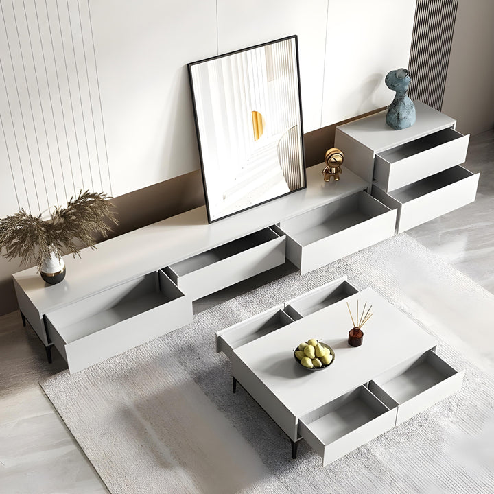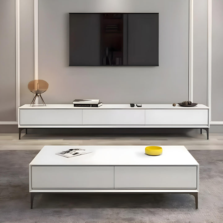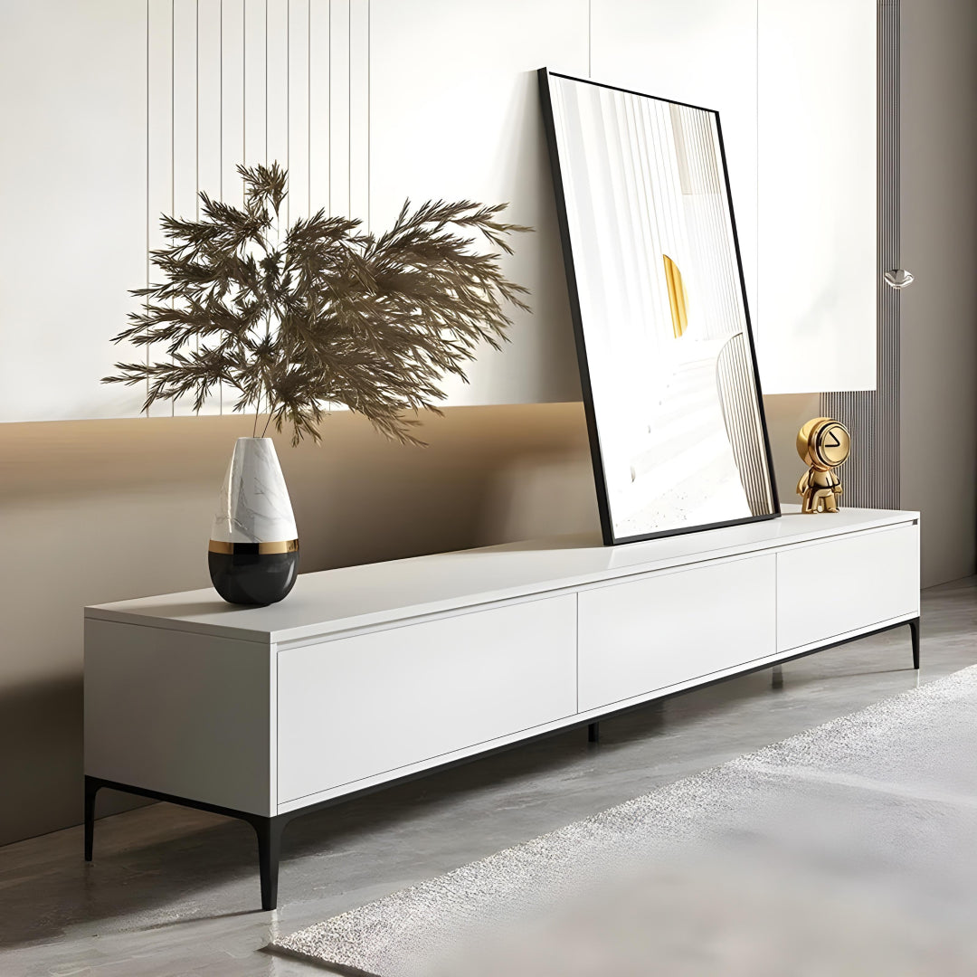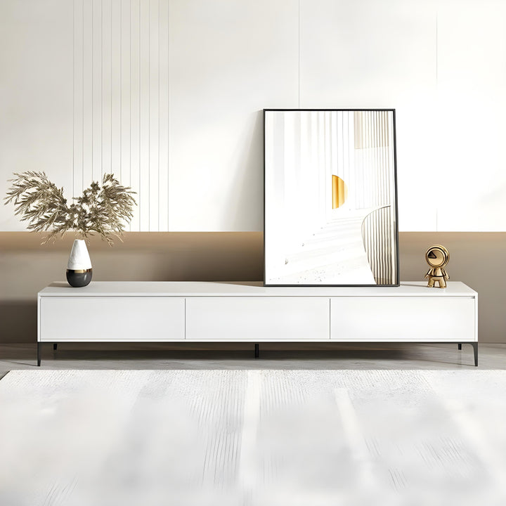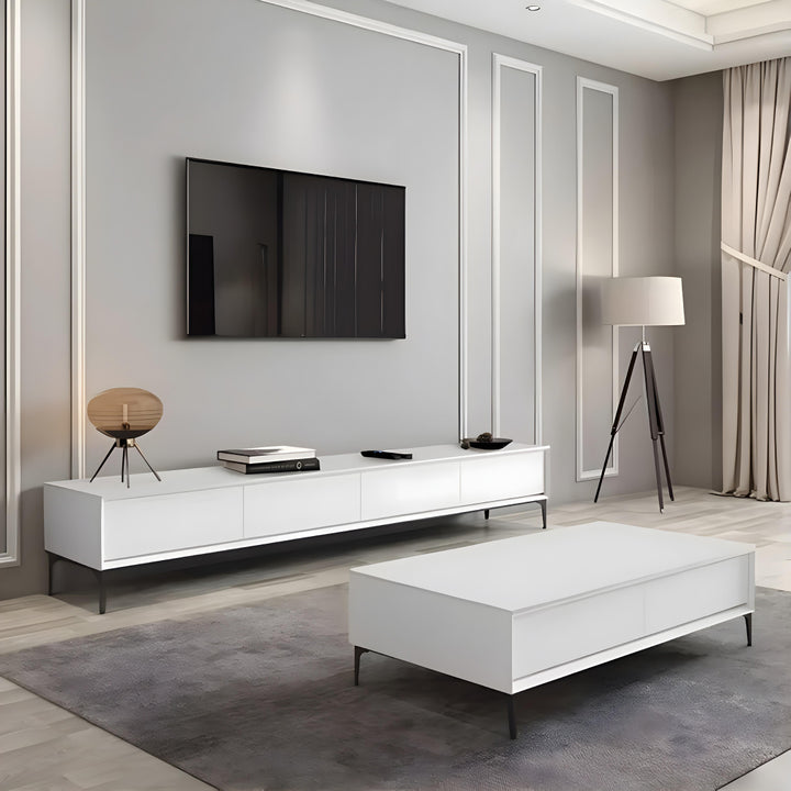 The Neve Media Console adds a fresh, clean look to your living area. Crafted from MDF with solid wood drawers, its sleek profile enhances modern aesthetics while providing ample storage space for entertainment essentials.