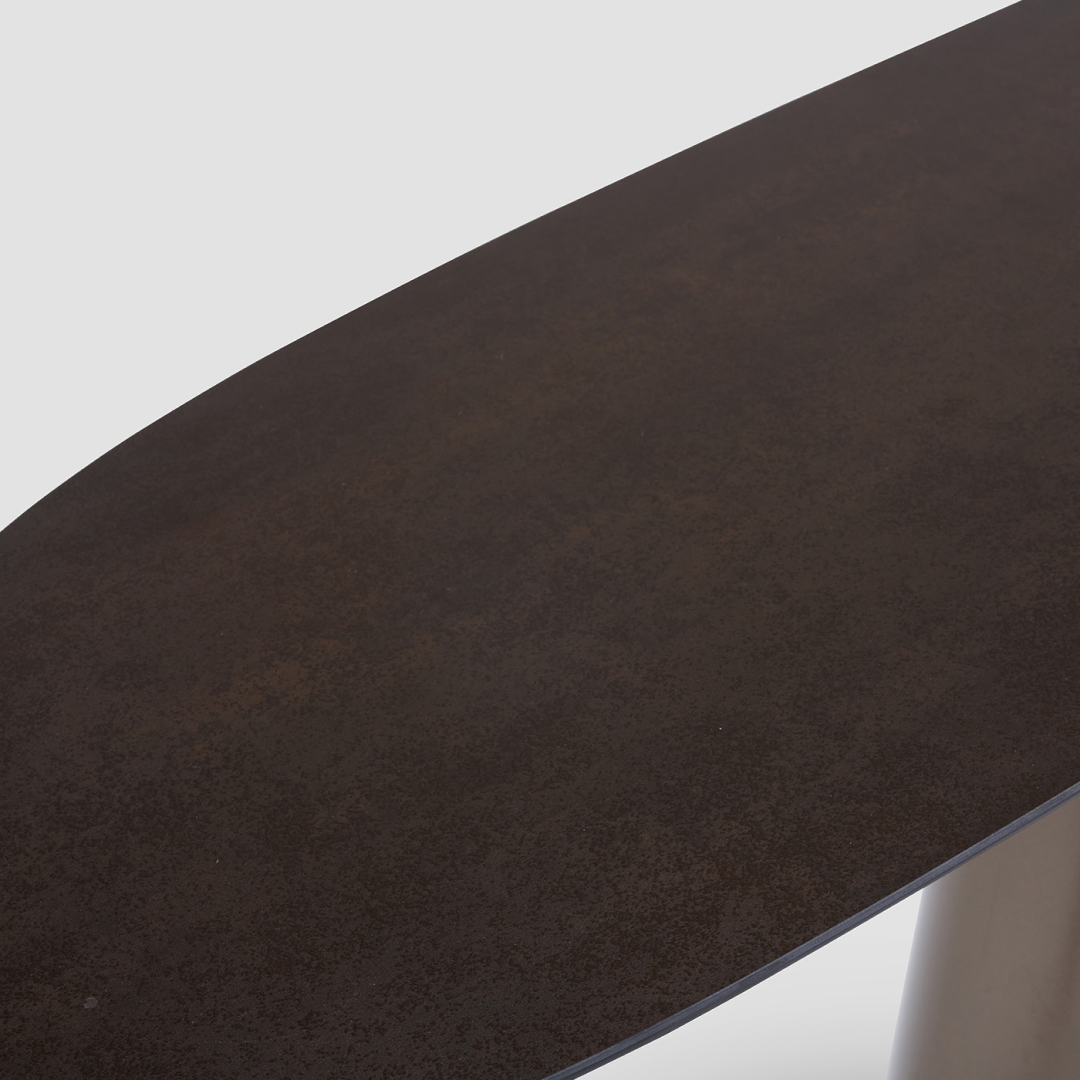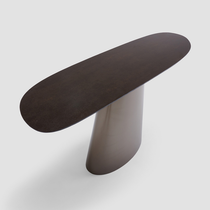 Bold design and refined materials come together in a compelling way in the Ombra Console Table. This table is a real show-stopper, with a sleek marble top held up by a sculptured stainless steel base finished in a soft bronze. Its strikingly simple form makes it ideal for modern settings, giving living rooms, hallways, and entryways a sophisticated touch. The Ombra Console Table adds grace and elegance to any room by fusing creative flair with practicality.