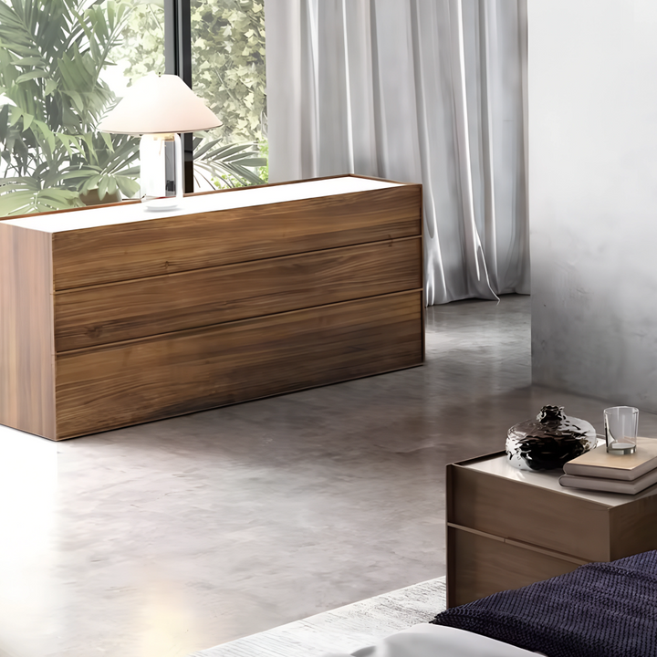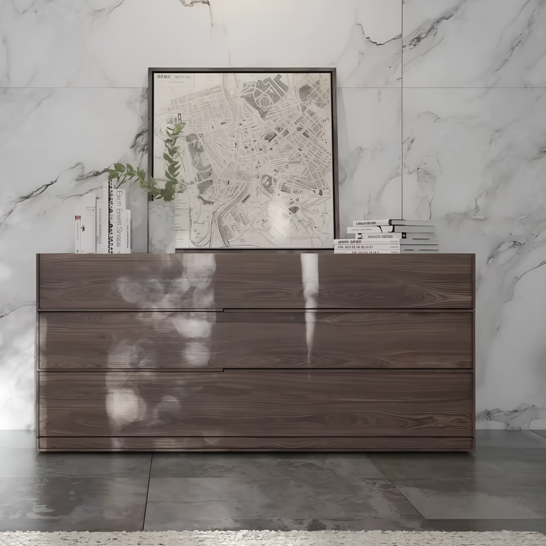 The Orto Dresser brings a touch of nature-inspired elegance to any room. Its rich plywood veneer finish displays beautiful wood grain patterns, adding warmth and texture to your space. With minimalist lines and integrated handles, this dresser is both functional and timeless, fitting seamlessly into modern or traditional settings.