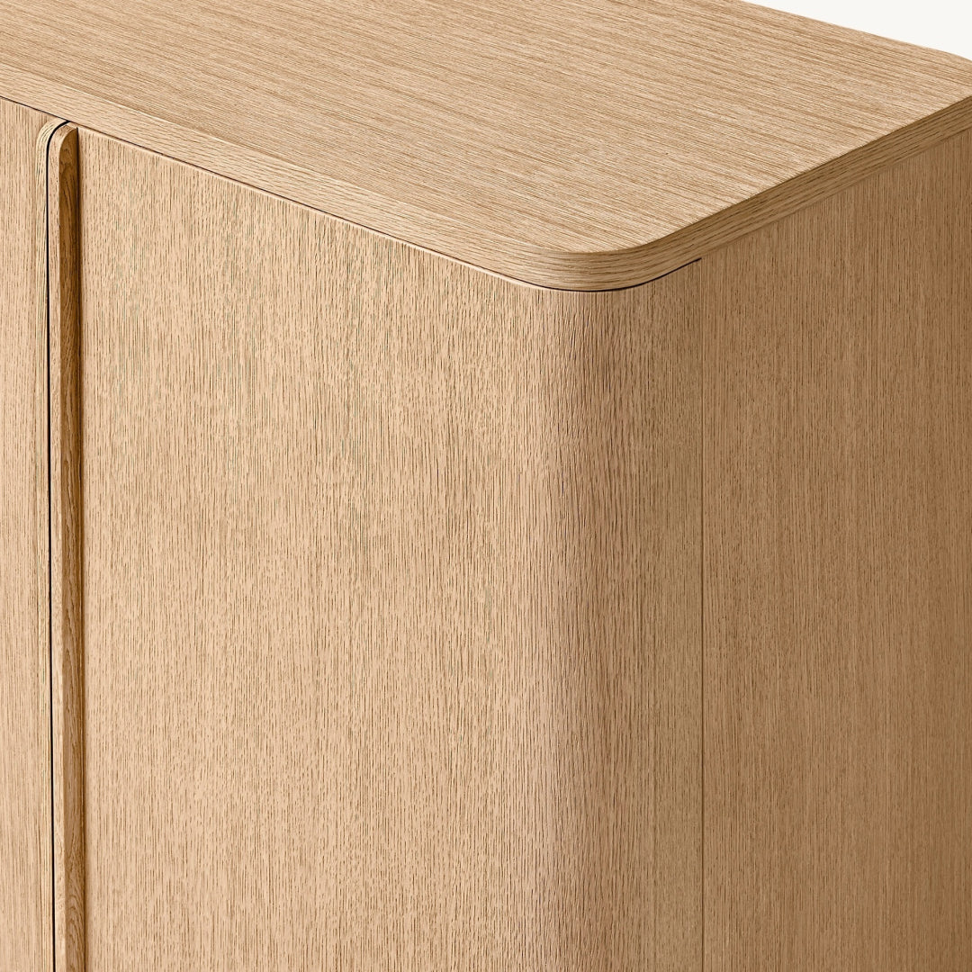 Meticulously handcrafted from kiln-dried oak with solid wood veneers, Ottava brings together clean lines and functional design. The open shelving provides convenient storage while maintaining a minimalistic and modern appeal. Its solid construction and refined detailing make it an ideal addition to contemporary interiors, offering a balance of utility and style.