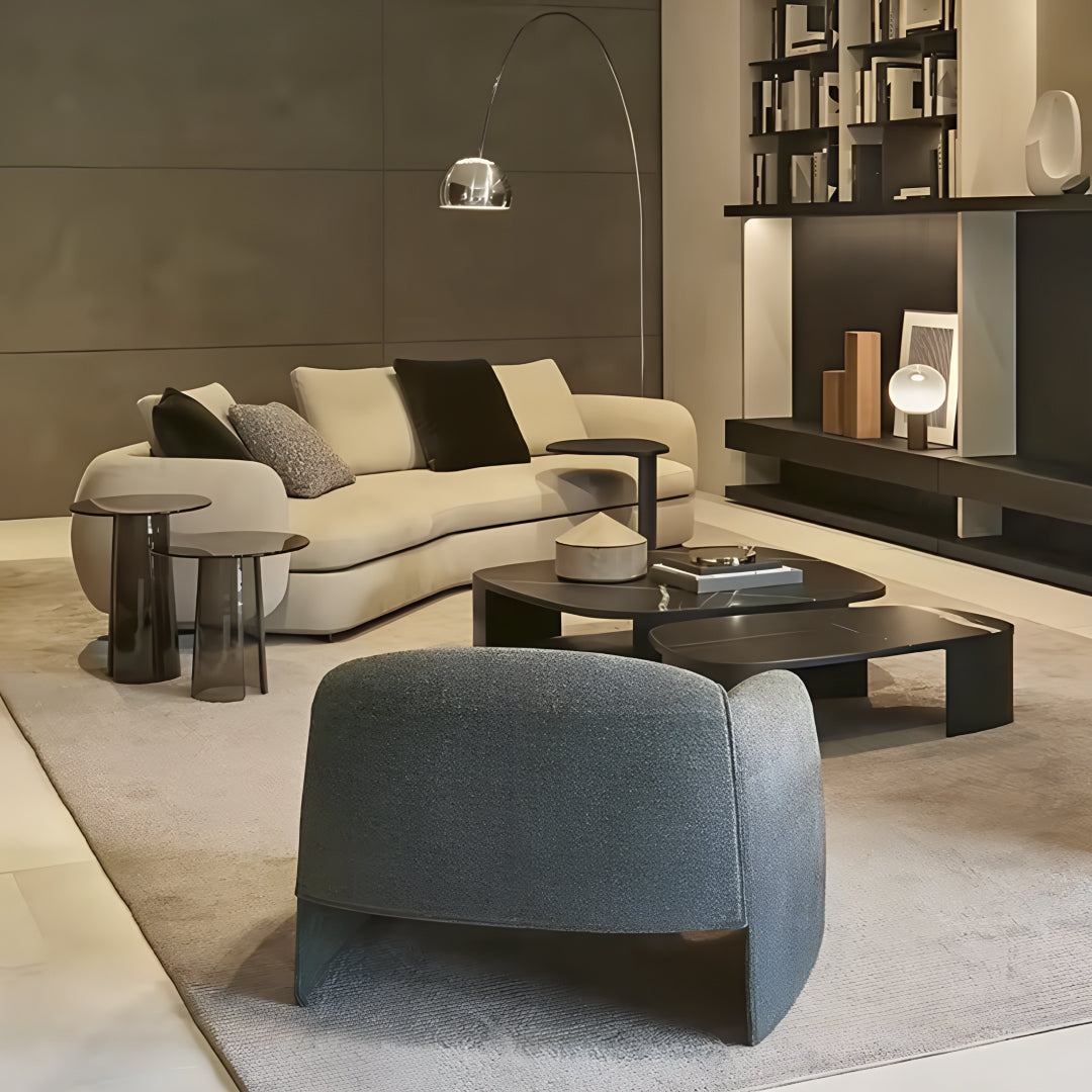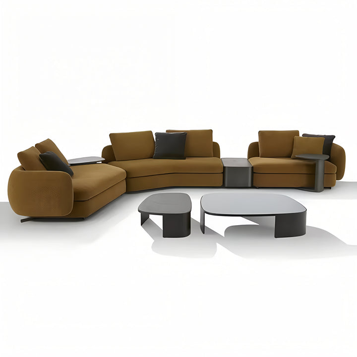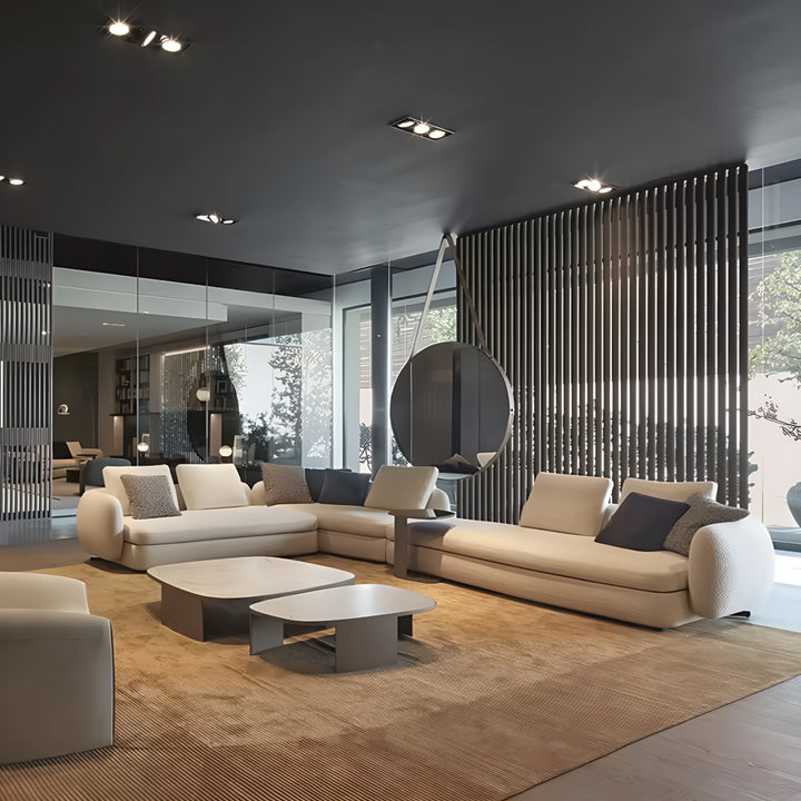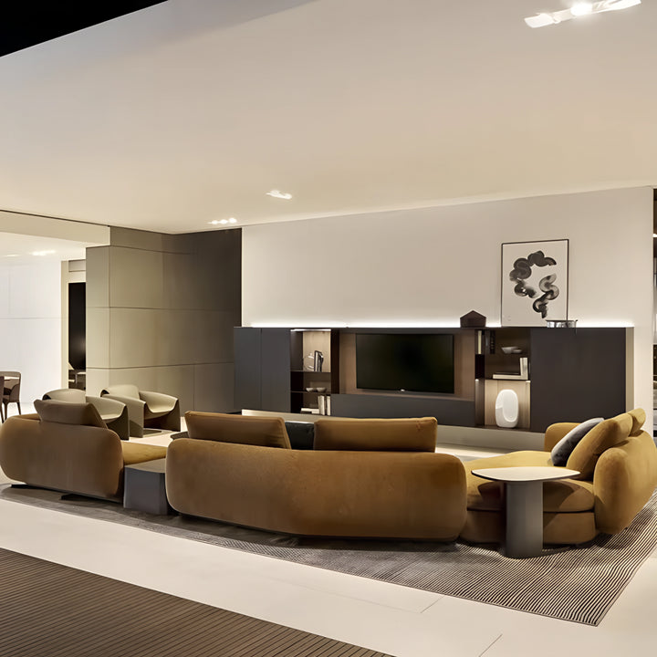 Its plush upholstery and sleek form make it a standout piece, perfect for contemporary interiors. With a pine wood inner frame and high-density foam, the Rame sectional offers durability and exceptional comfort for long-lasting relaxation.