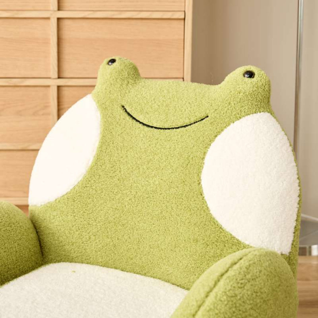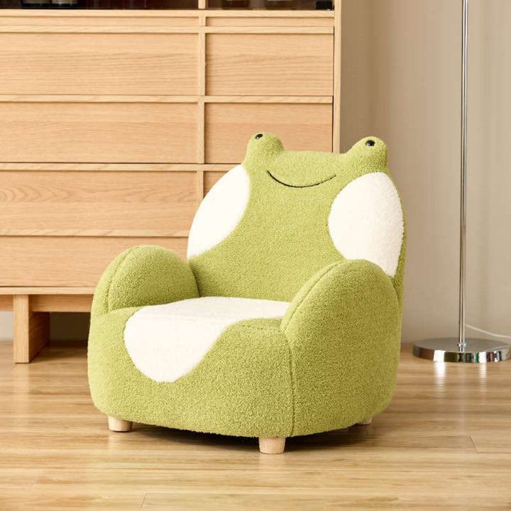 Inspired by a friendly frog, this playful chair brings a splash of fun and nature into your child’s room. Its soft green fabric and cozy padded seat are designed for hours of comfortable seating, whether for reading, watching, or simply relaxing. The adorable frog eyes and wide, smiling face make Ranocchia an instant favorite. With sturdy wooden legs for stability, it’s the perfect blend of whimsical design and practical comfort. This chair will have your little ones hopping with joy