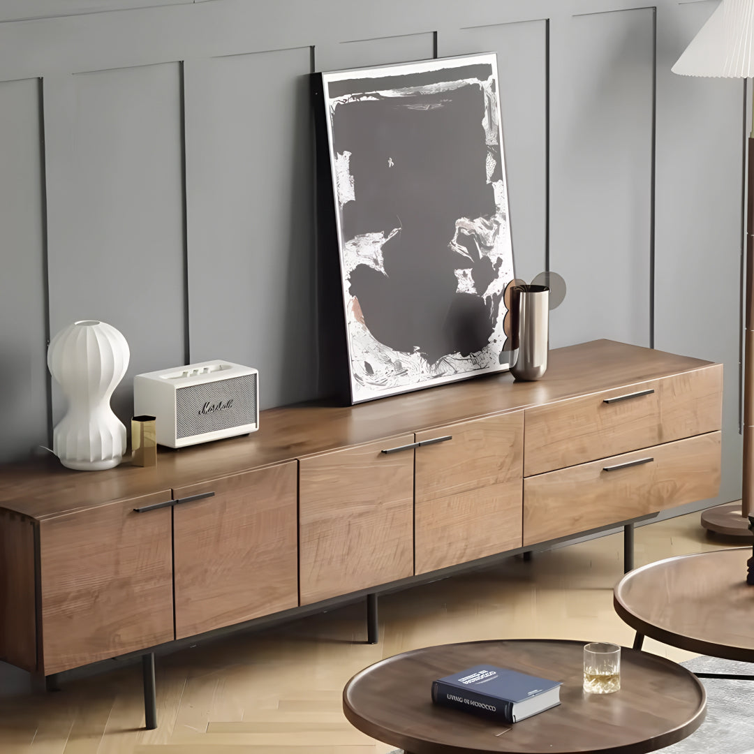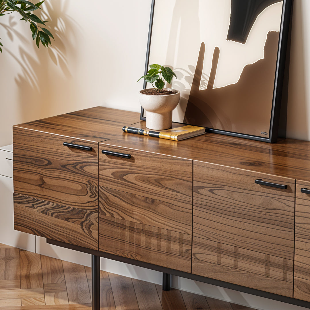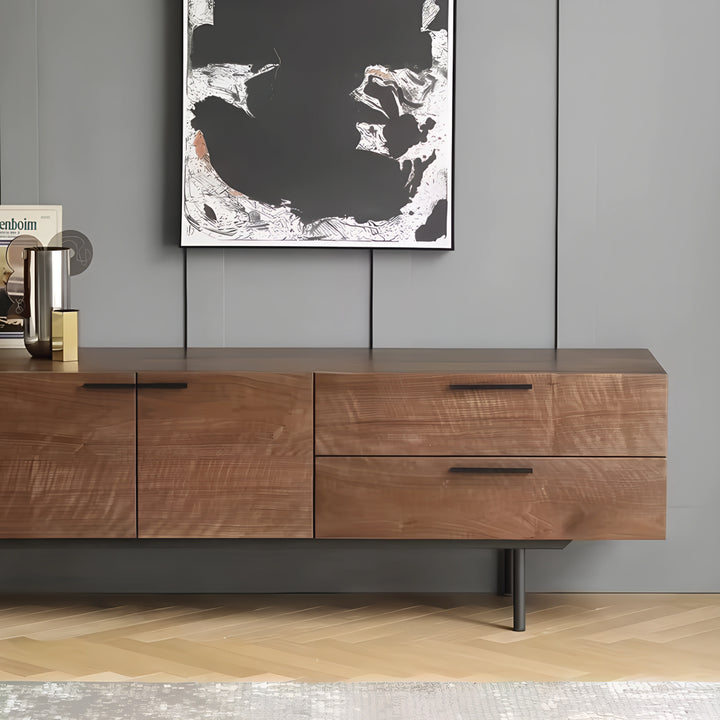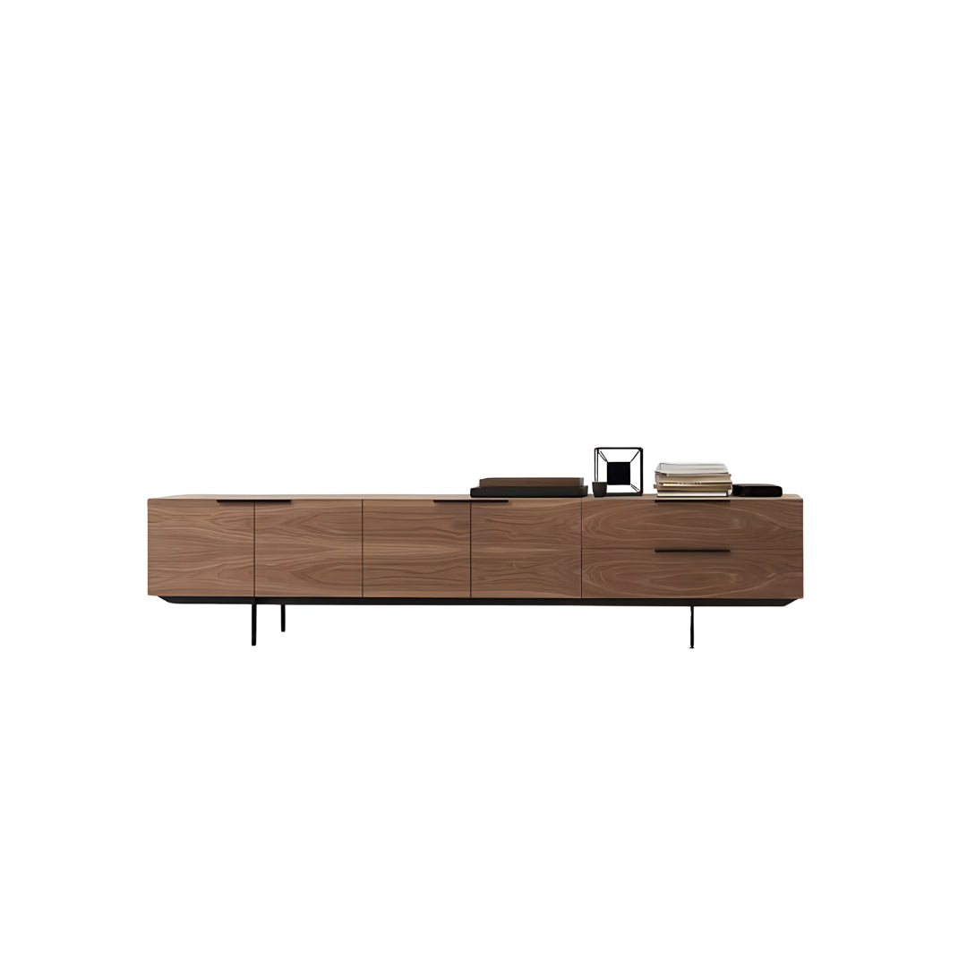 The Rocca TV Cabinet is a robust yet elegant piece, crafted from premium plywood and solid wood drawers. Its sleek design enhances modern living spaces while providing ample storage for electronics and media. Supported by sturdy metal legs, this cabinet ensures stability while maintaining a refined, minimalist aesthetic. Ideal for those who value both form and function, Rocca is built to be a stronghold for your entertainment essentials