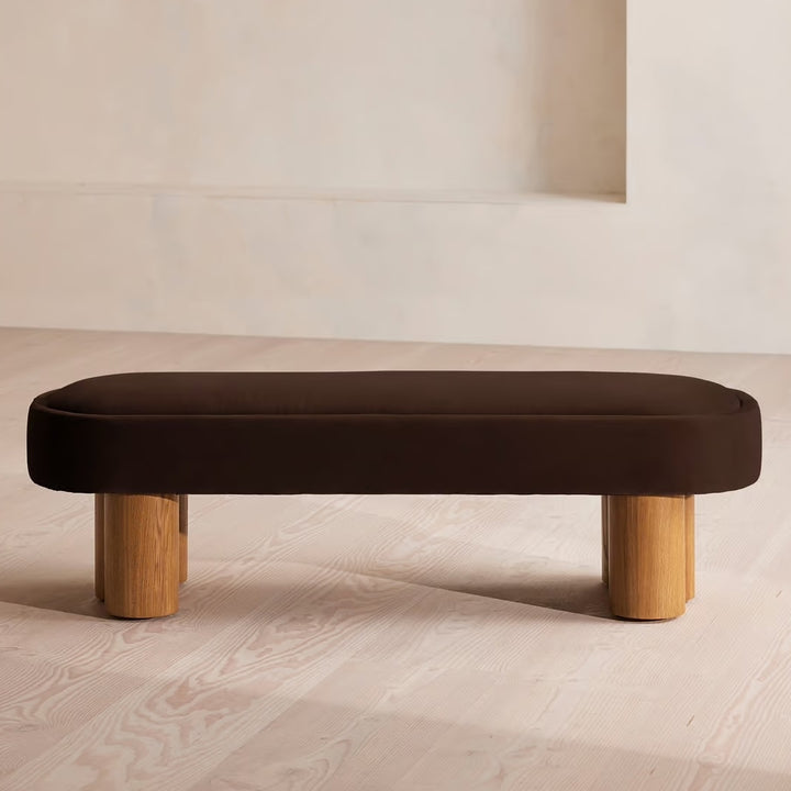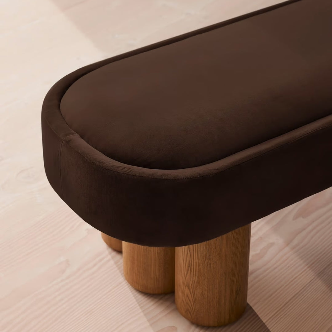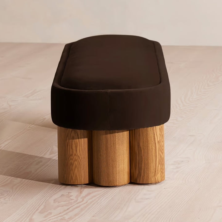 The Roma Bench Seat is a bold statement of modern Italian design, combining sculptural form with luxurious comfort. Upholstered in high-quality fabric and cushioned with high-density foam, this piece offers exceptional support and elegance. Its solid wood legs, featuring a unique cylindrical design, add a touch of architectural interest while ensuring durability. Perfect for entryways, living spaces, or bedrooms