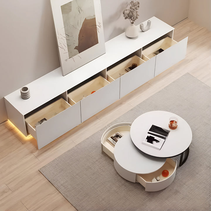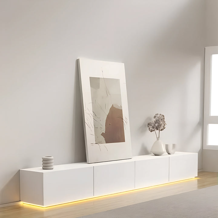 The Serenità Floating TV-cabinet brings a modern, calming presence to your living space with its clean lines and minimalist design.The floating design offers a sense of lightness, enhanced by the soft, warm glow of the integrated lighting beneath.
