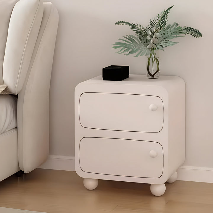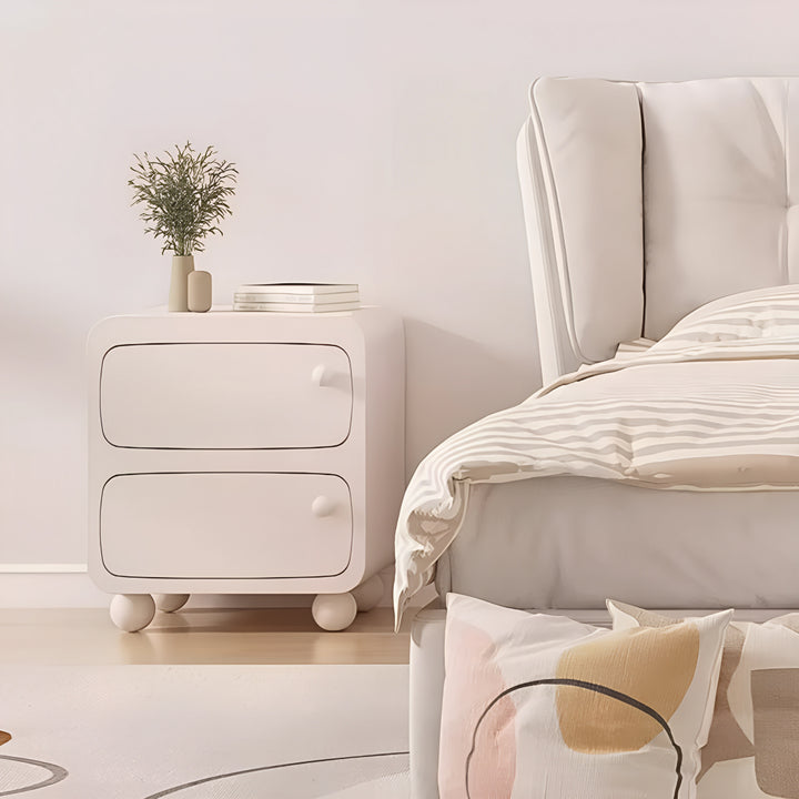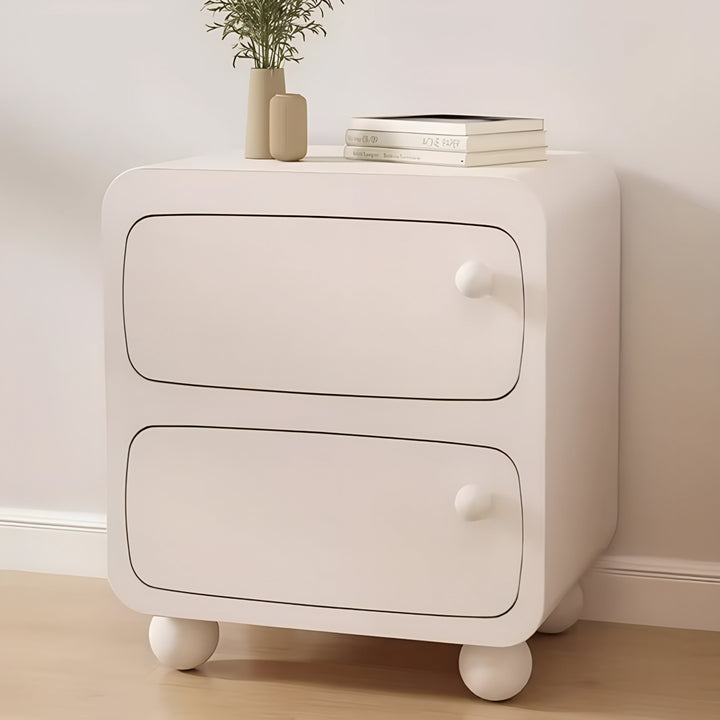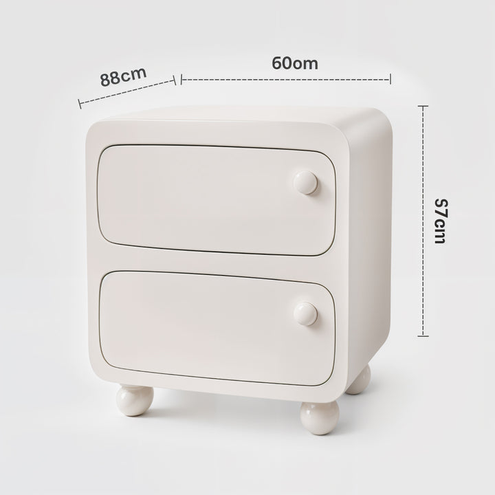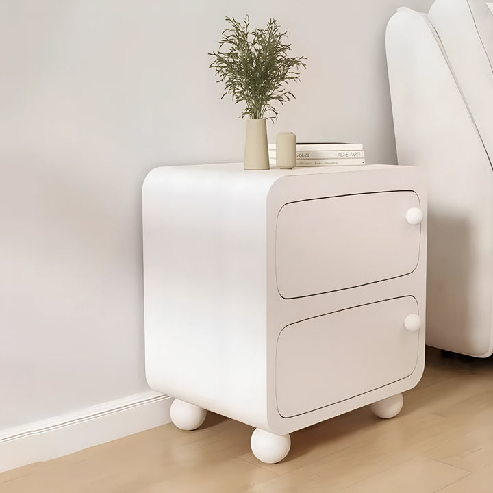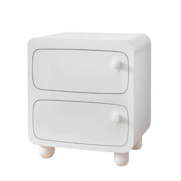 The Sfera Nightstand is a charming addition to any bedroom, designed with smooth curves and subtle details. Made from high-quality MDF and finished with a refined white painting, it offers both aesthetic appeal and practical storage. Its spherical legs provide a distinct character, while the minimalist design ensures it complements various interior styles. With two spacious drawers, this nightstand is perfect for keeping bedside essentials within easy reach, all while adding a sense of modern elegance to your space.