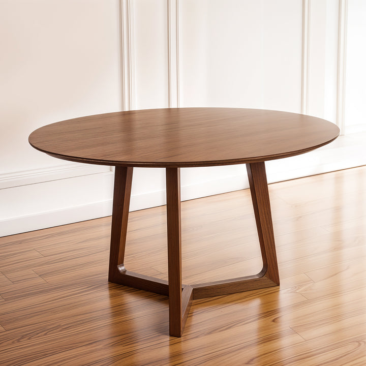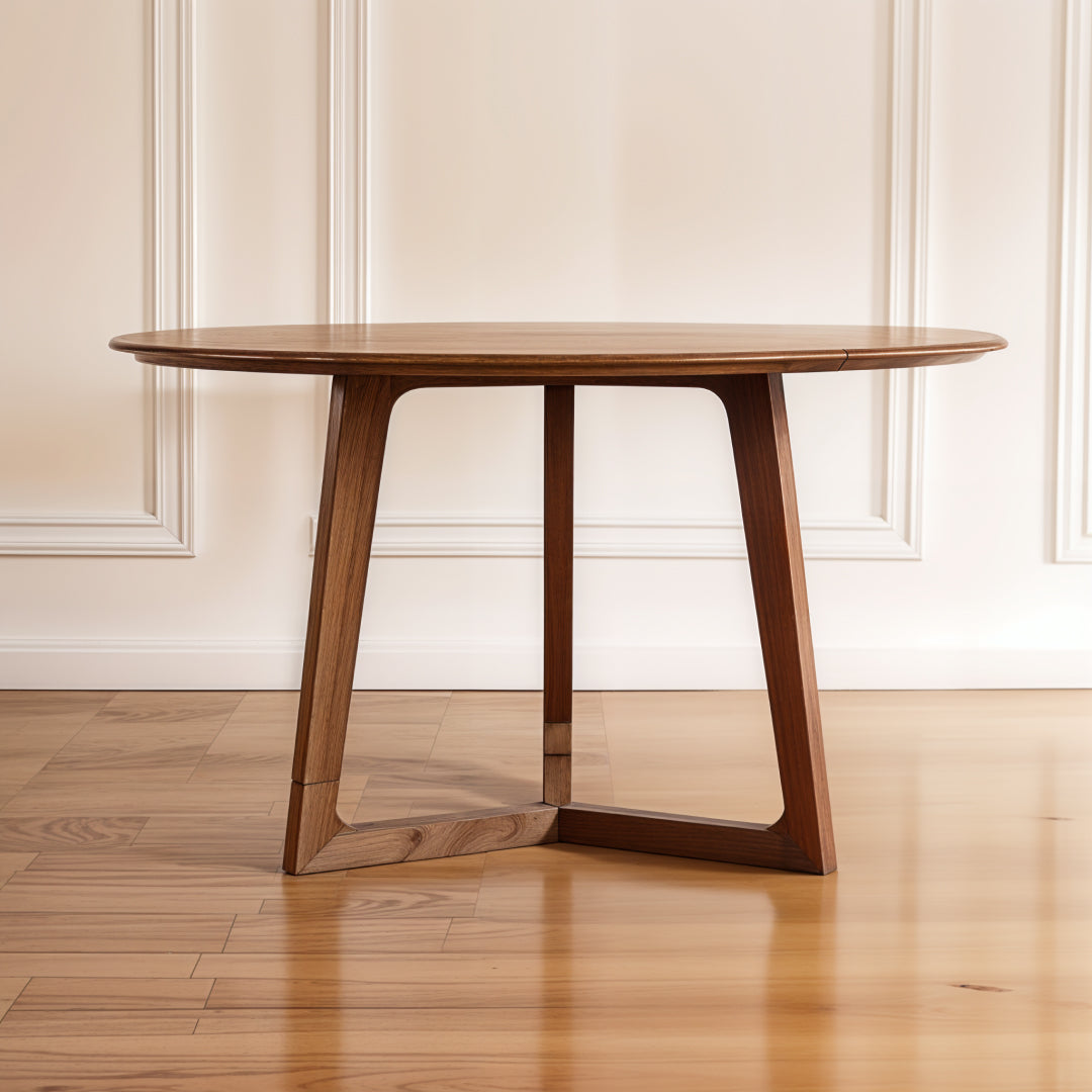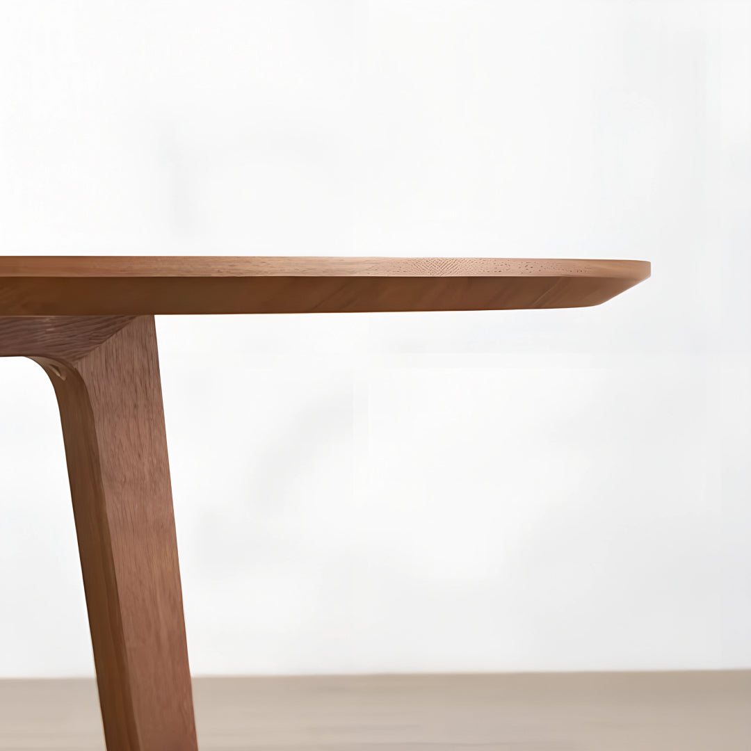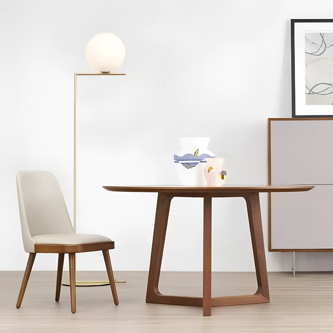 The Solana round table is crafted from an MDF veneer frame with solid ash wood legs, bringing a warm and natural element to your dining or living space. Its rounded top and elegantly angled legs create a balanced, minimalist design, perfect for any contemporary or modern setting. The table’s sturdy construction ensures durability, while its refined aesthetic adds a sense of calm and simplicity to the room