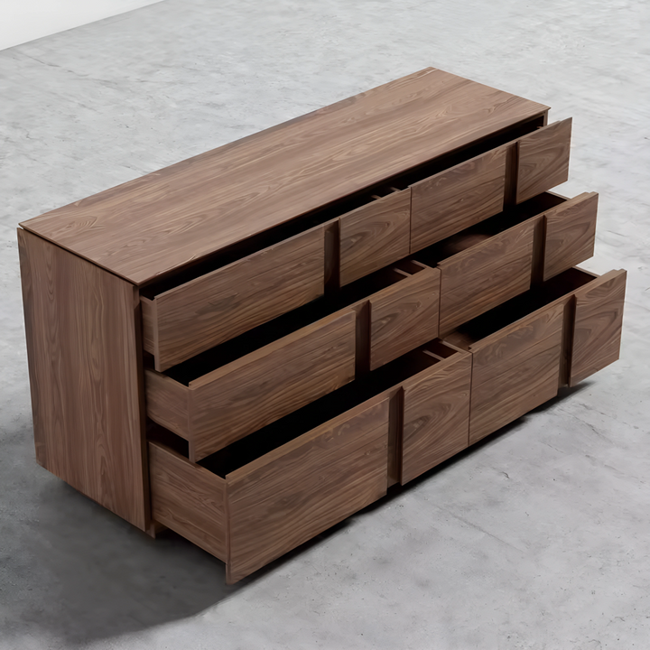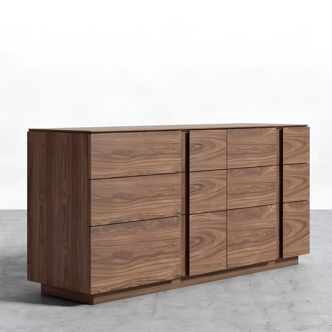 The Solara Dresser brings a warm and natural charm to any bedroom with its sleek design. Featuring a plywood veneer finish, its smooth surfaces and minimalist form provide both practical storage and visual appeal. The refined style of the dresser fits seamlessly into modern, contemporary, or transitional spaces