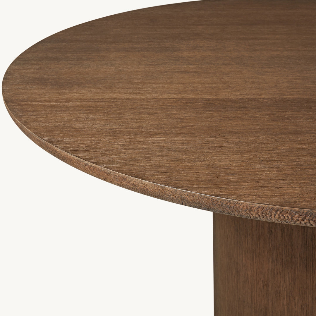Solare Table exudes modern elegance with its minimalist cylindrical base and rounded top. Its clean lines and balanced proportions make it an ideal centerpiece for dining spaces or collaborative meeting rooms. The table's form promotes open interaction, while its solid presence brings an air of stability and serenity. Designed to seamlessly complement contemporary interiors, Solare shines as a versatile statement piece that invites both function and beauty into any setting