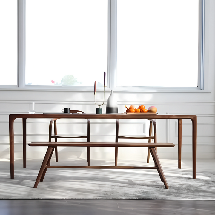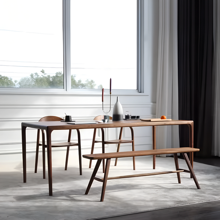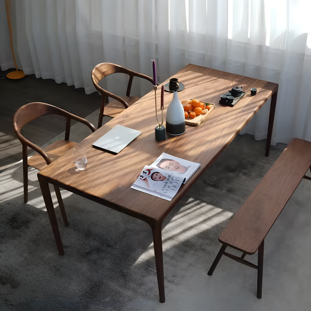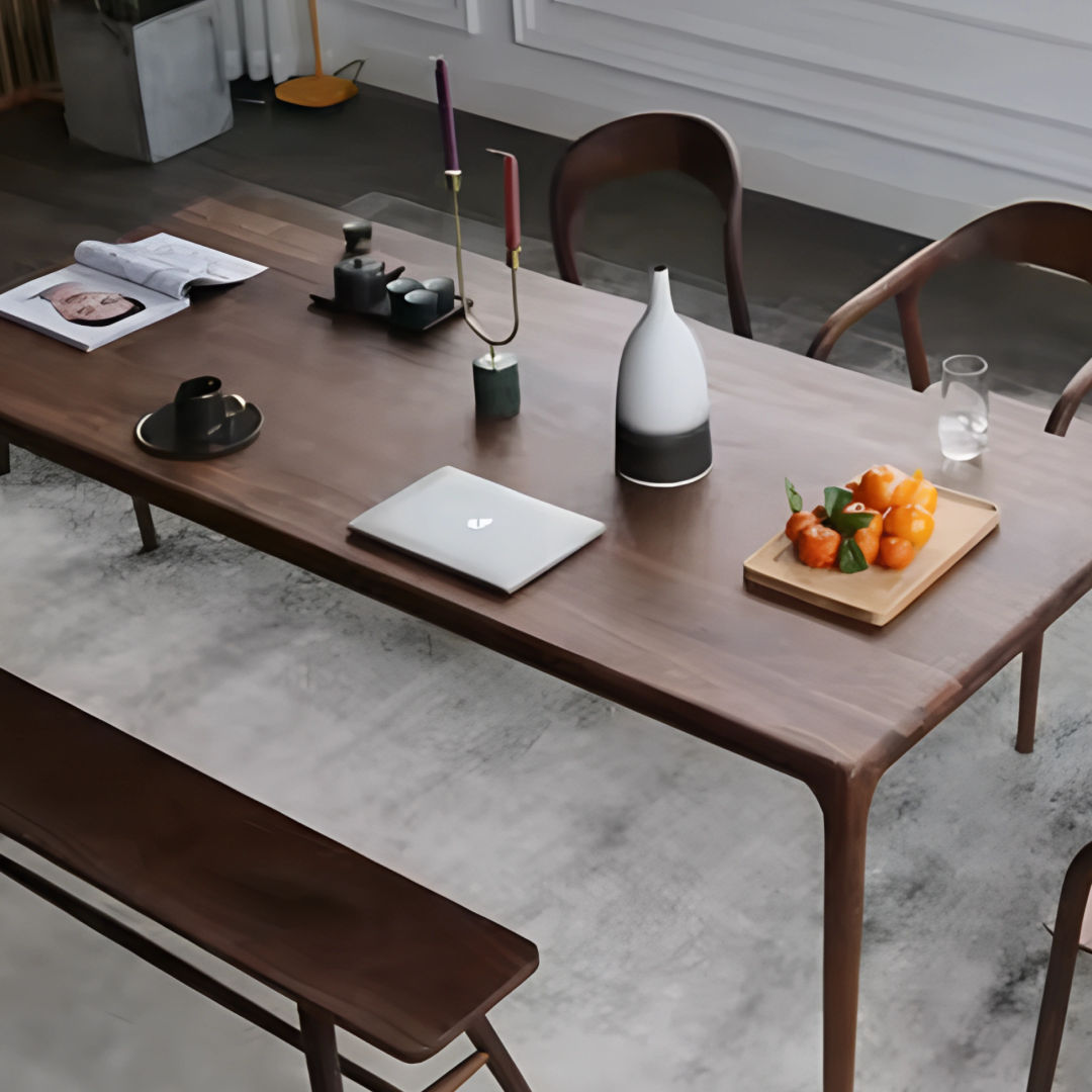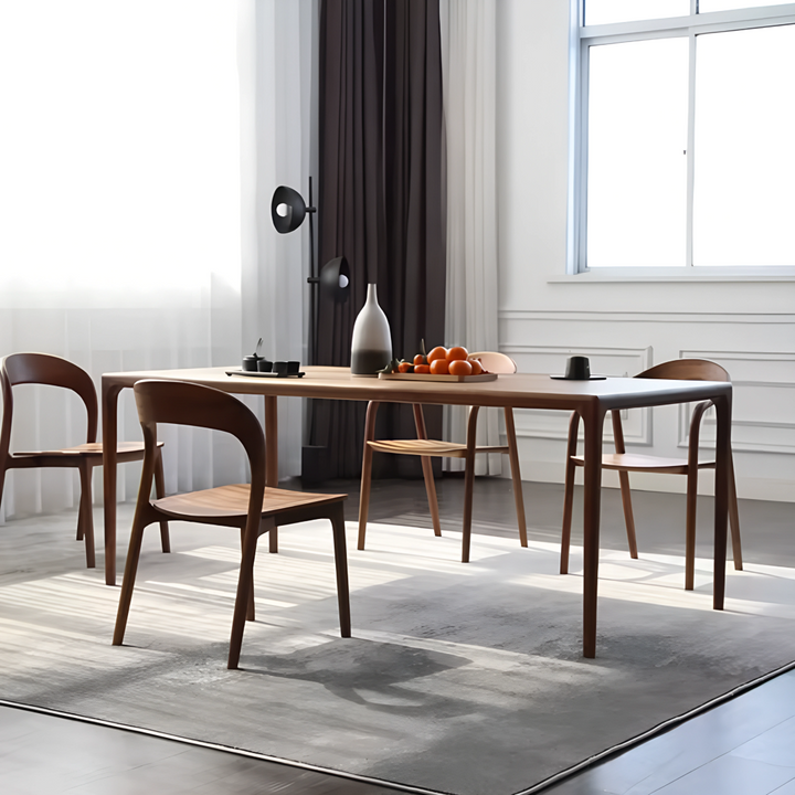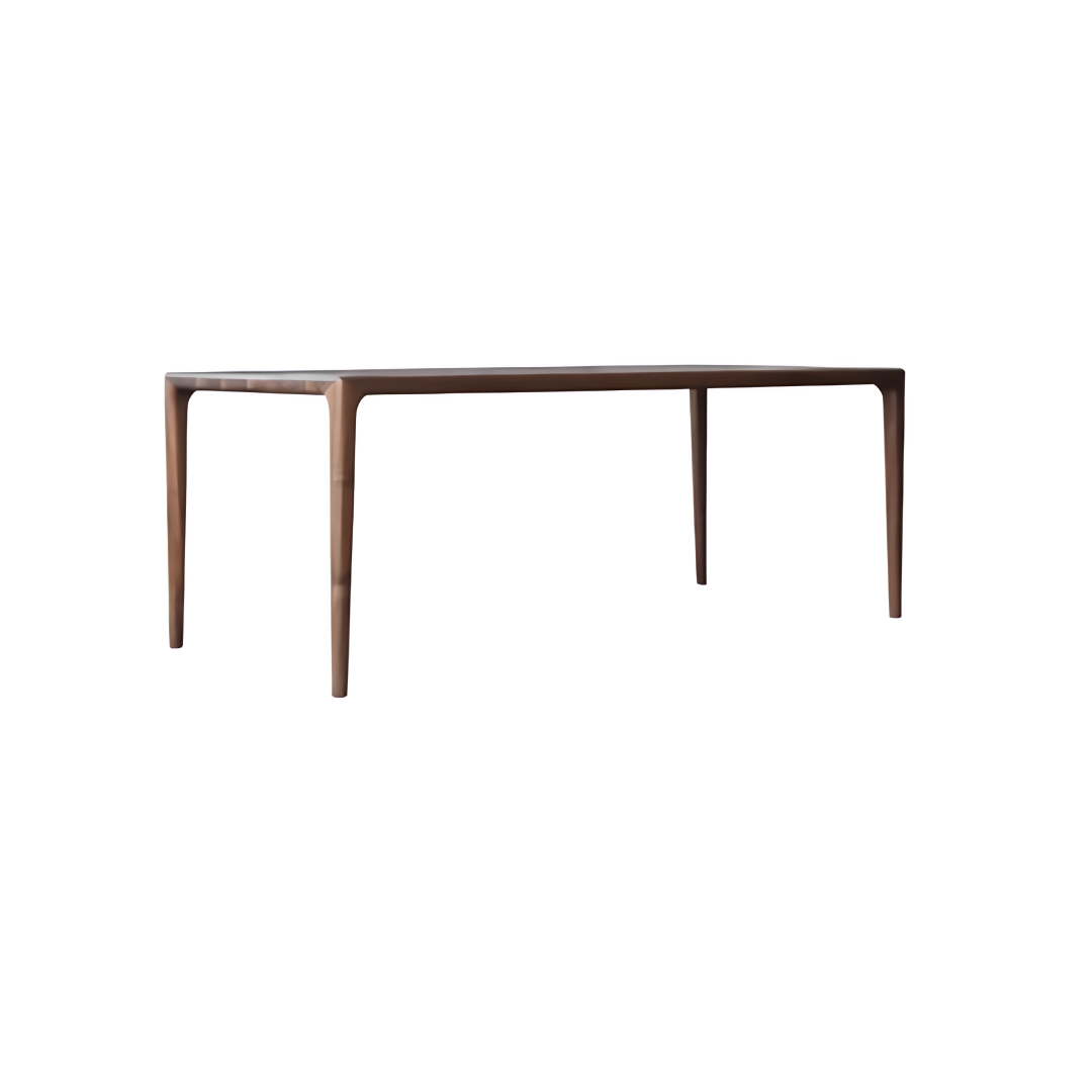 The Sottile Dining Table's delicate shape and exquisite craftsmanship epitomize understated elegance. The table's tapering solid wood legs, which offer stability and a sense of lightness, support the table's smooth plywood veneer top.