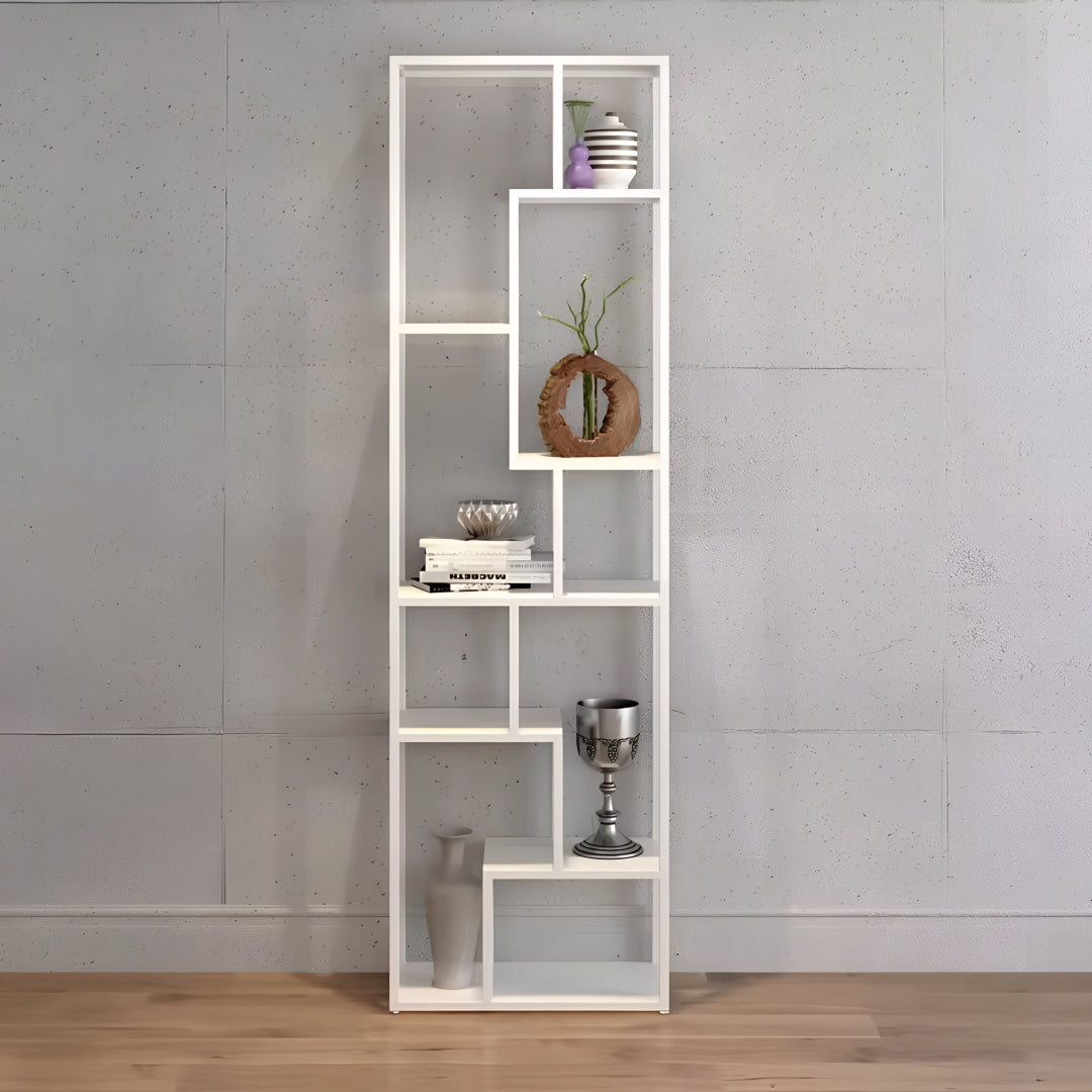 The Spazio Bookshelf redefines vertical storage with its geometric design and artistic symmetry. Crafted from high-quality wood, this bookshelf offers both functionality and a striking visual statement, perfect for displaying books, decor, or personal collections. Its clean lines and open spaces make it an ideal fit for contemporary interiors, offering a balance between form and function