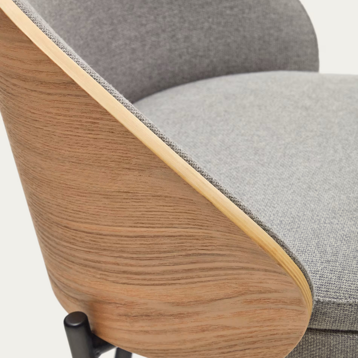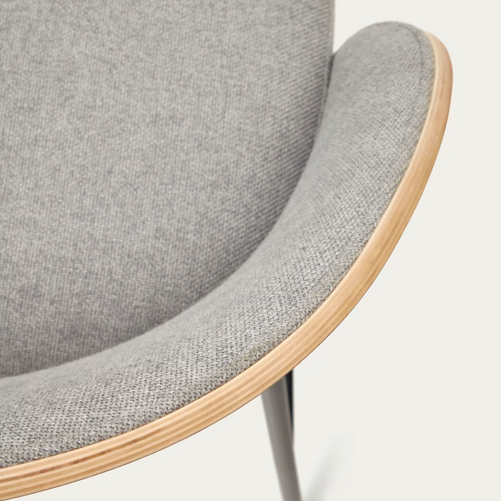 A combination of modern style and comfort can be found in the Stella Chair. With its high-density foam cushioning and plush fabric upholstery, the chair guarantees a comfortable sitting experience. While the sleek metal legs offer stability and a contemporary look, the plywood backrest offers a touch of organic warmth