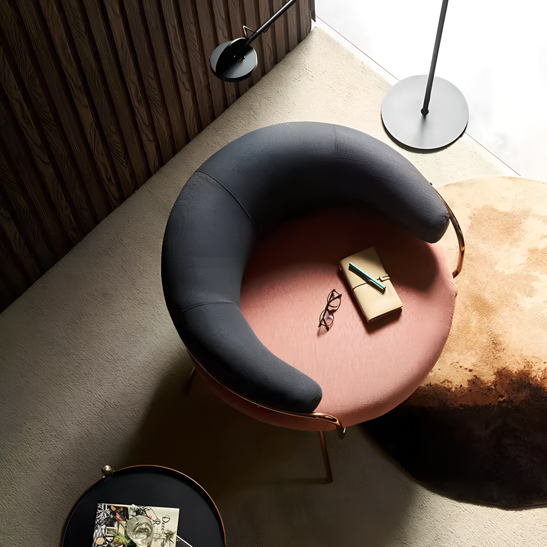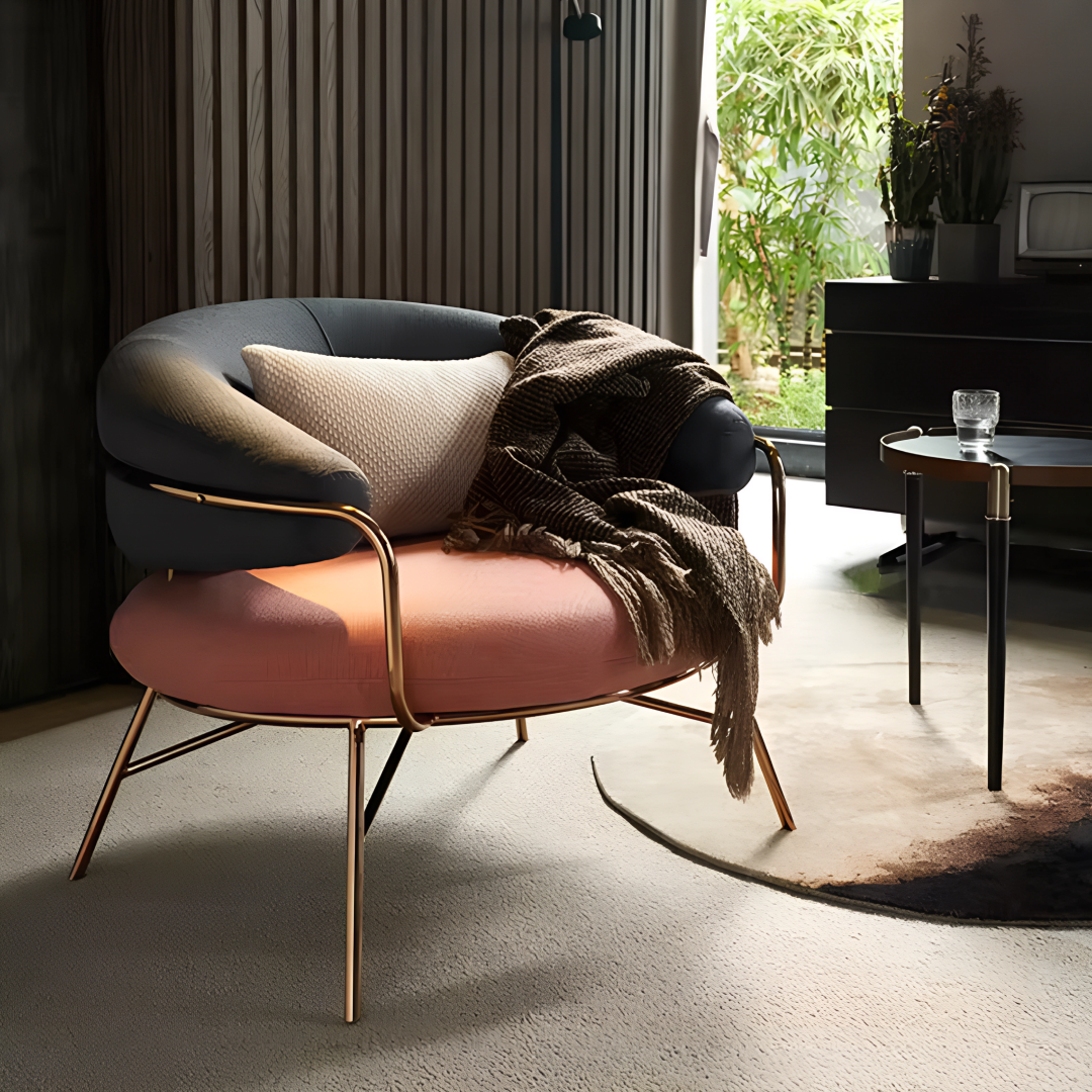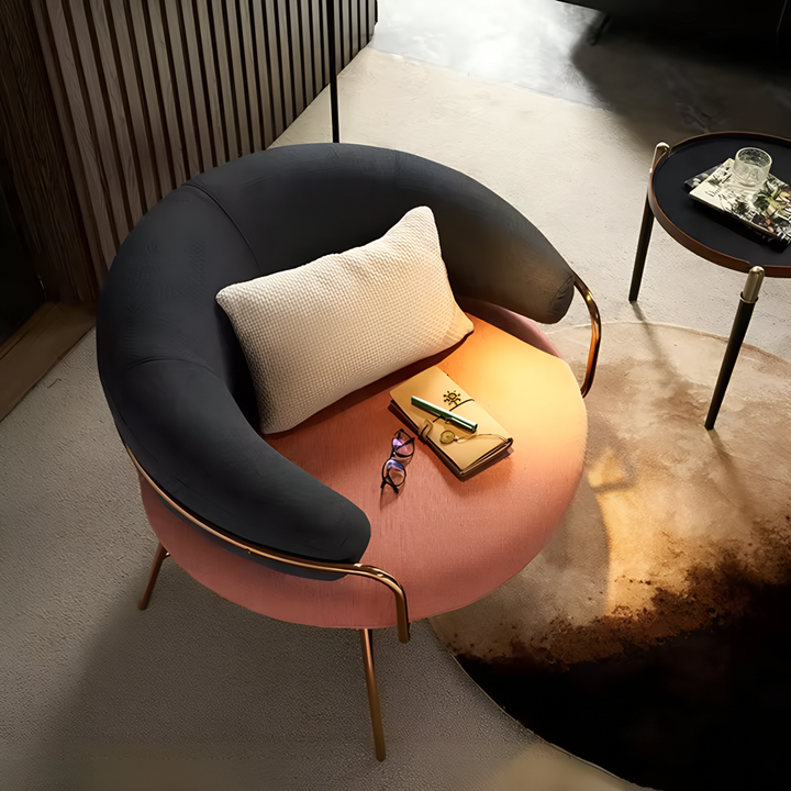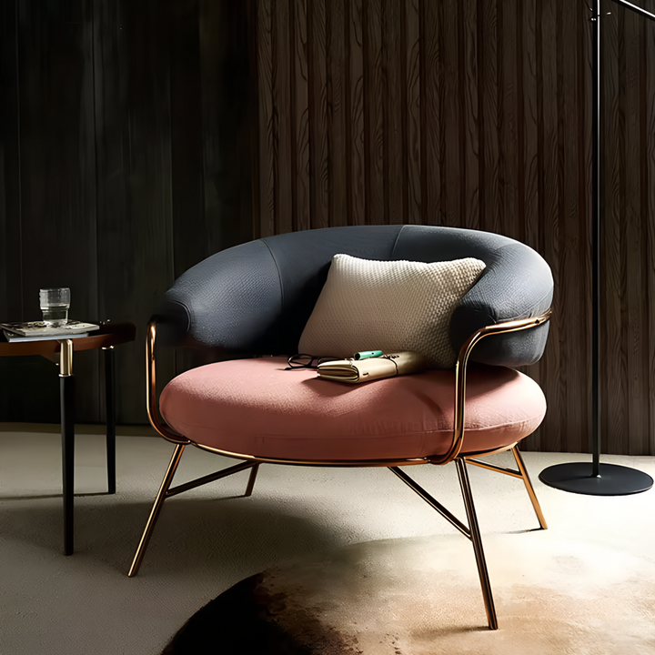 The Stella Chair combines comfort with contemporary elegance. Its plush, layered cushioning invites you to sink into its embrace, while the striking combination of contrasting fabrics and a sleek metal frame makes it a bold statement piece for any modern living space. Perfect for lounging or reading, it offers both style and relaxation in one inviting design.