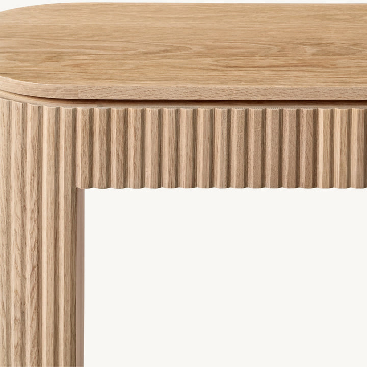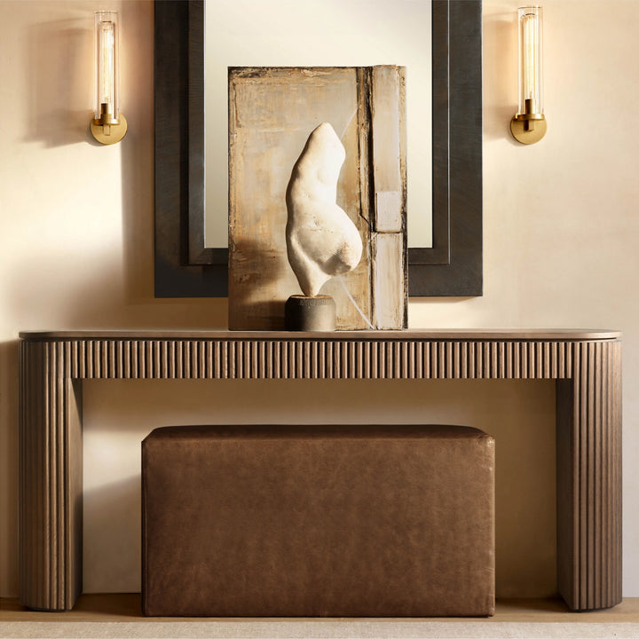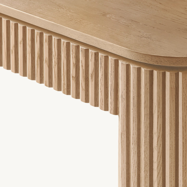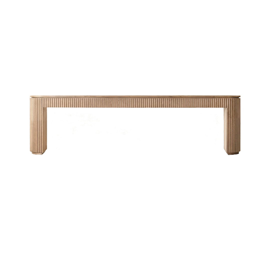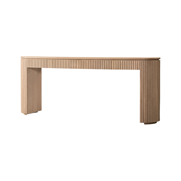 The Stria Console Table brings sleek modernity and subtle texture to your entryway or living space. Its streamlined form features a captivating ridged surface, which adds visual interest without overwhelming your decor. The elongated shape offers ample surface space for displaying artwork, decor, or everyday essentials, while the sturdy handcrafted hardwood construction ensures long-lasting durability. Perfect for minimalist and modern spaces, this console table is a statement piece that marries form and function in perfect harmony.