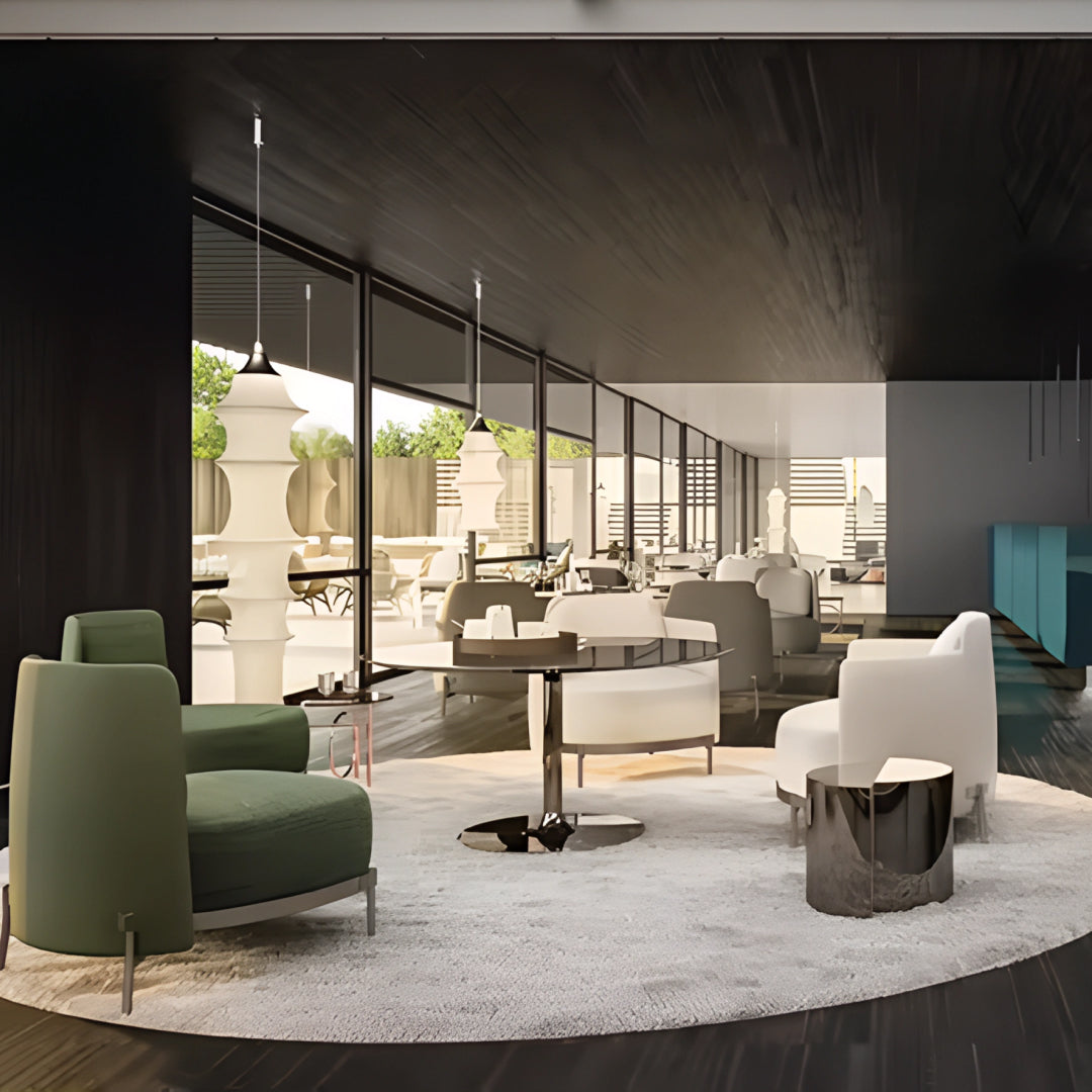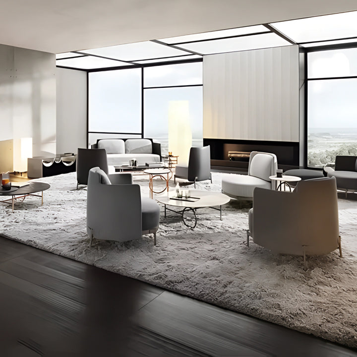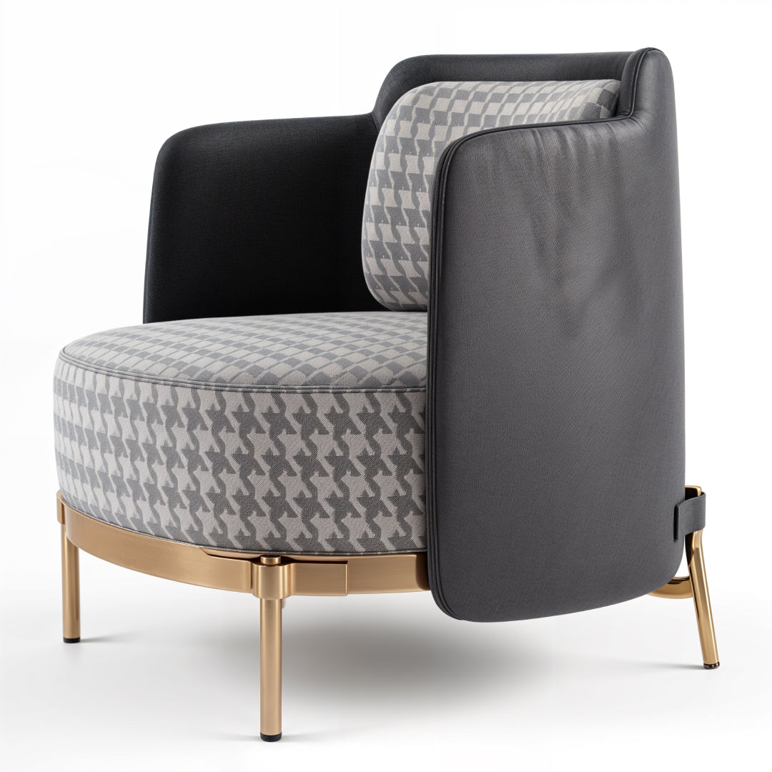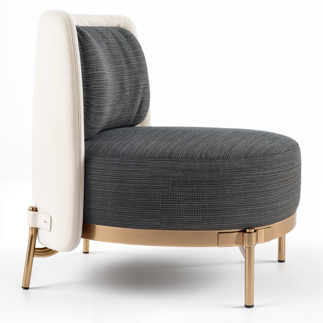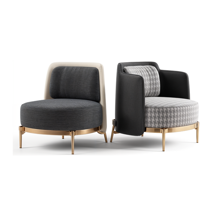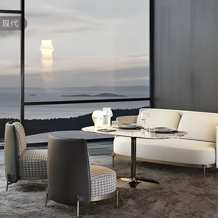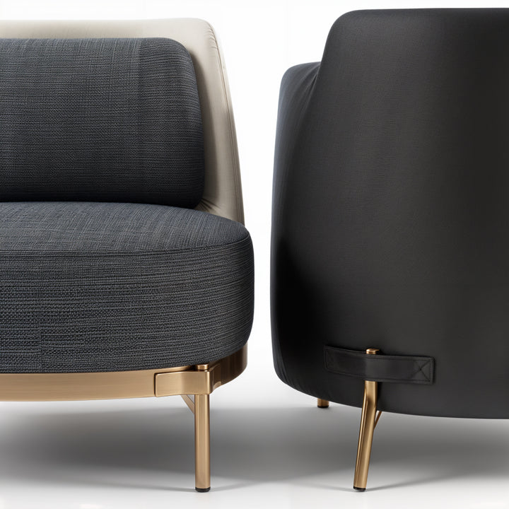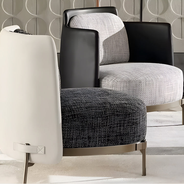 The Tavola Chair is a perfect blend of modern comfort and elegance. Upholstered with a mix of high-quality fabric and PU leather, it provides an ultra-soft sitting experience supported by high-density foam. The stainless steel legs offer a sleek and sturdy base, making this chair both durable and sophisticated. Its contrasting materials and rounded shape add a chic touch to any living room or lounge area, making it a luxurious piece for contemporary interiors