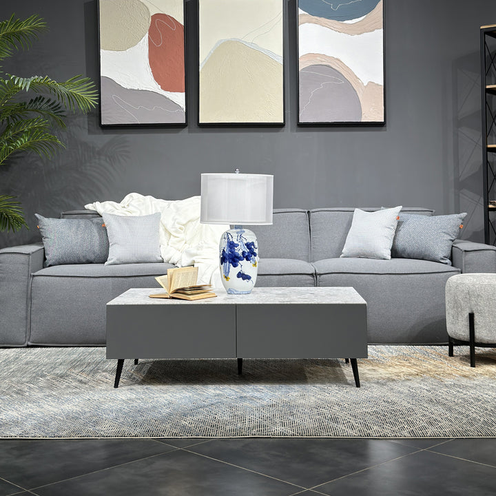 The Tenebra Sofa features a strong pine wood inner frame and high-density foam for exceptional comfort. Upholstered in fabric/PU, its clean lines and minimalist design make it a versatile piece that fits seamlessly into any modern space. This sofa brings a striking, contemporary aesthetic to any living room, offering both style and relaxation in one.