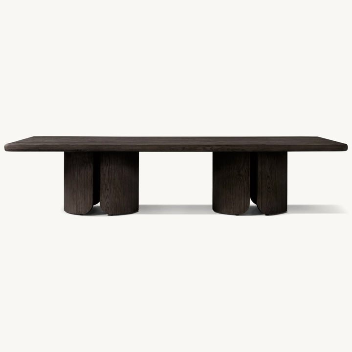 The Valenza table offers a bold, sculptural presence with its unique columned base. Designed for those who appreciate both modern minimalism and statement-making pieces, this table adds a refined yet commanding touch to dining spaces. Perfect for gatherings, its expansive surface ensures functionality while its artistic form elevates any room.