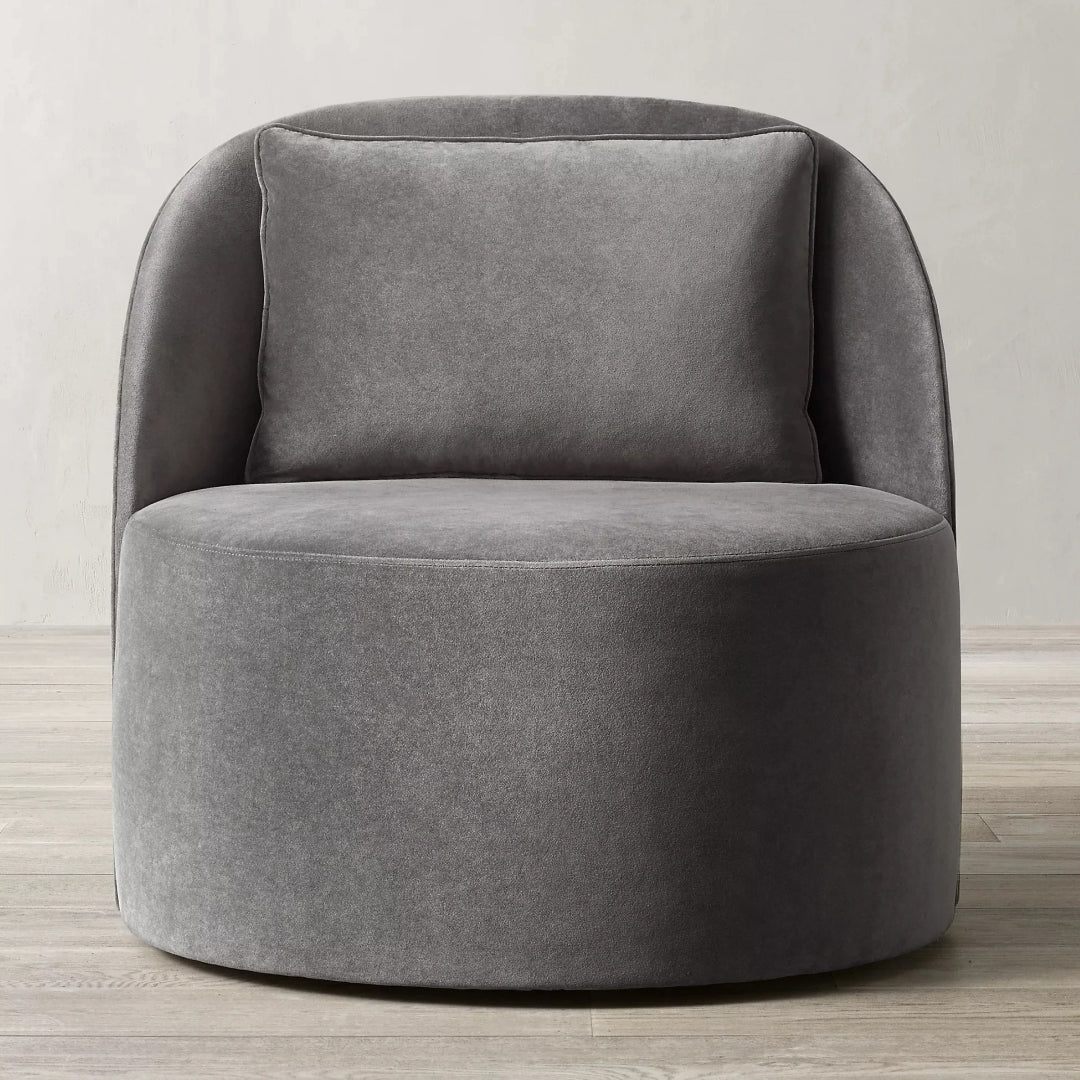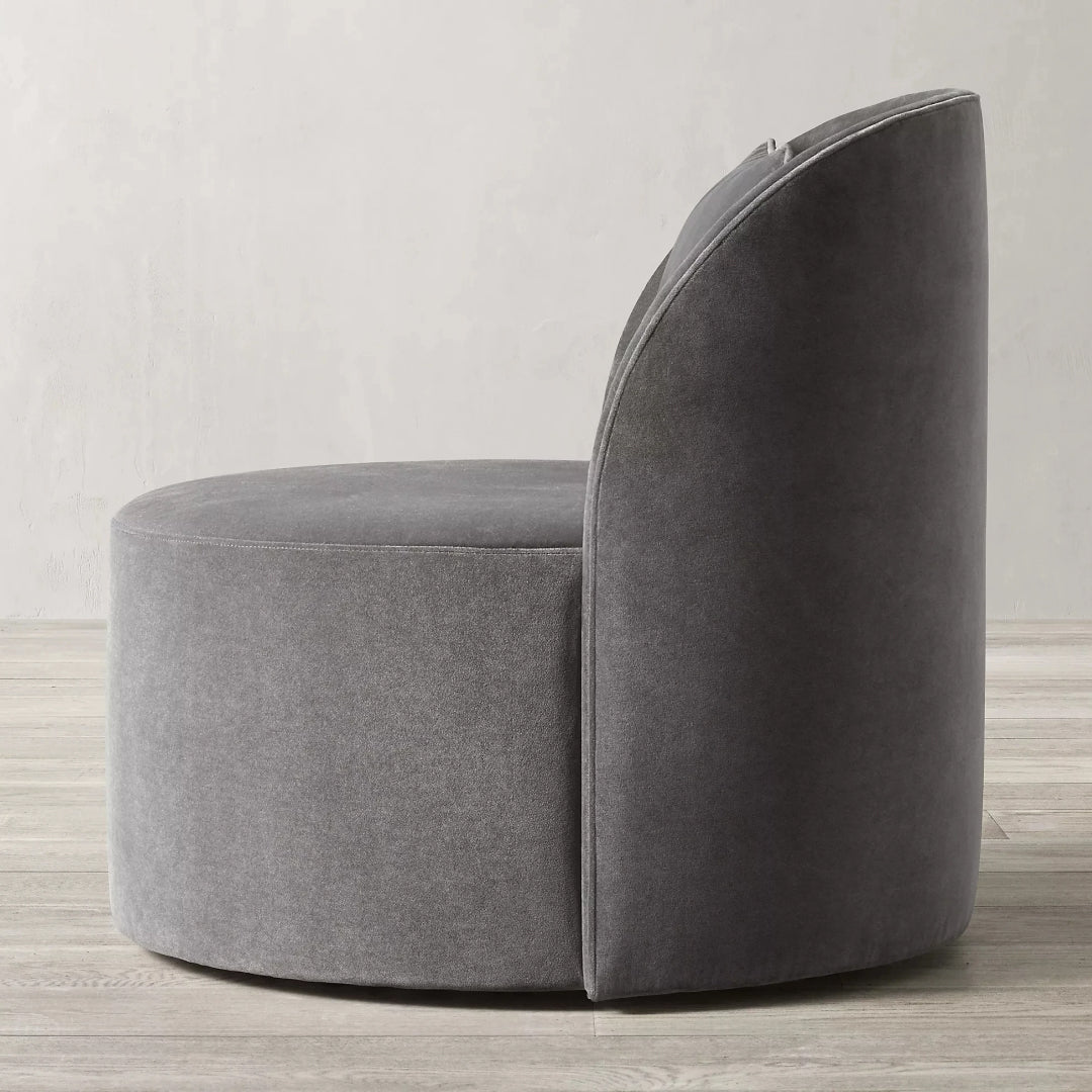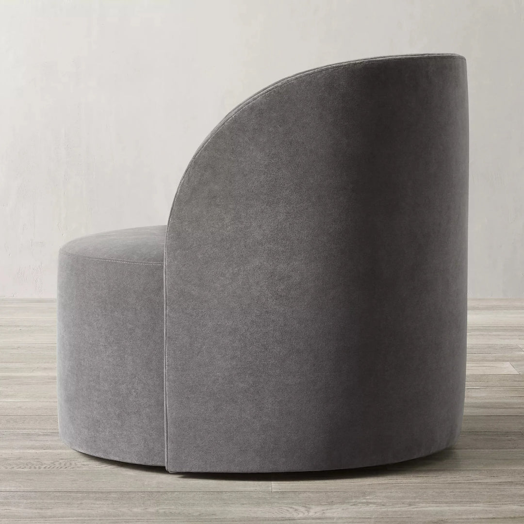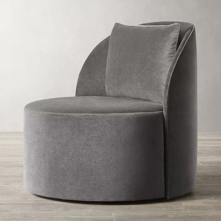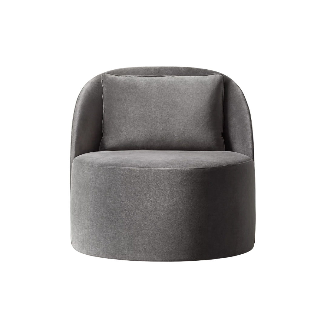 The Velora Lounge Chair combines comfort with a sculptural design. Its plush upholstery and high-density foam padding make it a cozy spot to relax, while the soft, curved backrest with an included cushion offers added support. The modern, circular base provides stability, making Velora a sophisticated addition to any living space or bedroom with its elegant and contemporary appeal.